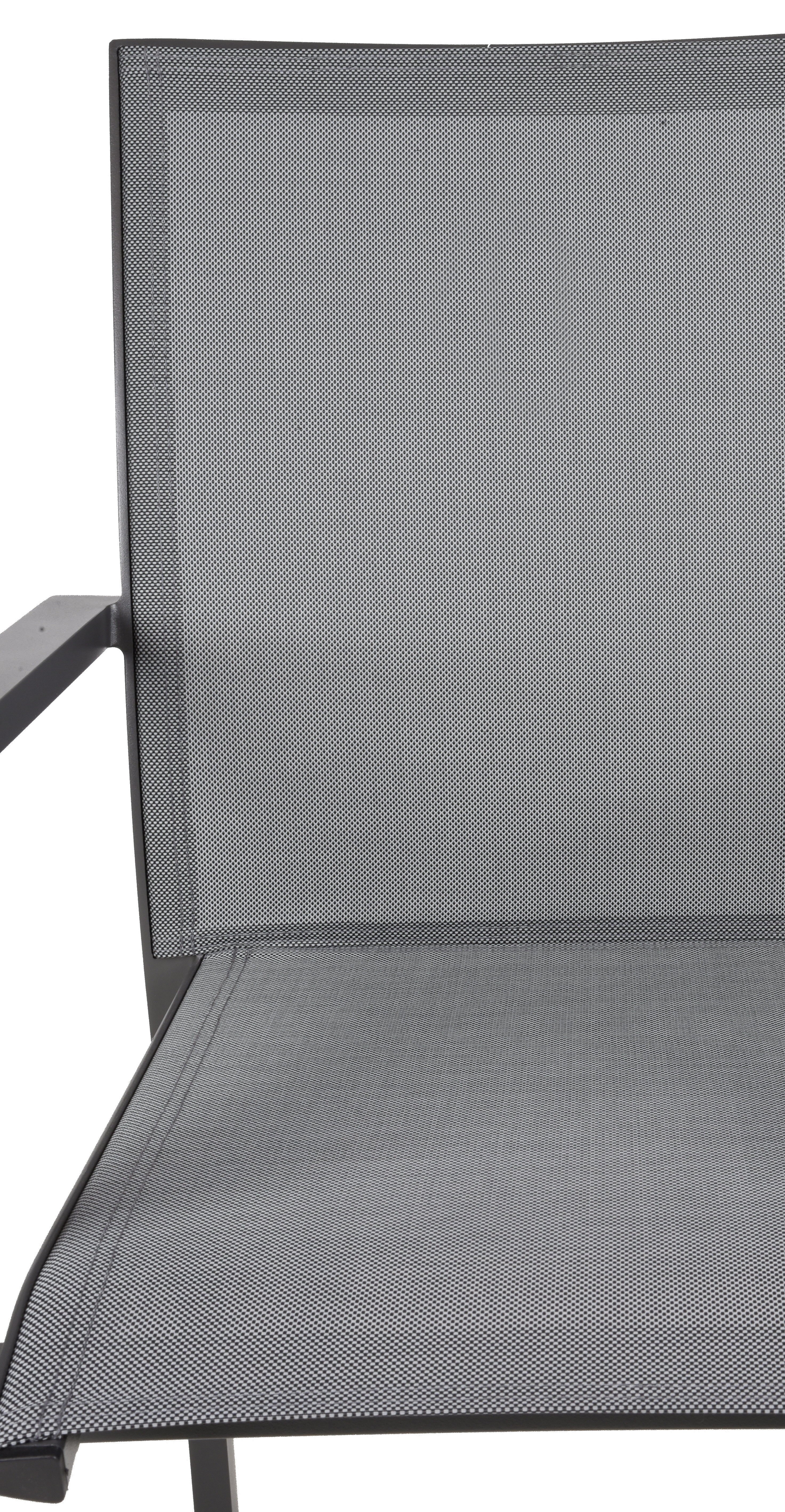 Die acht Stapelstühle RANA sind aus pulverbeschichtetem dunkelgrauem Aluminium gefertigt und mit bequemem Kunststoffgewebe in mittelgrau ausgestattet. Dank des stapelbaren Designs sind diese Stühle leicht zu lagern und bieten dennoch Komfort und Unterstützung. Dieses Set enthält einen Ausziehtisch und sechs Stühle und ist ideal für gesellige Mahlzeiten im Freien oder Treffen mit Familie und Freunden geeignet.
