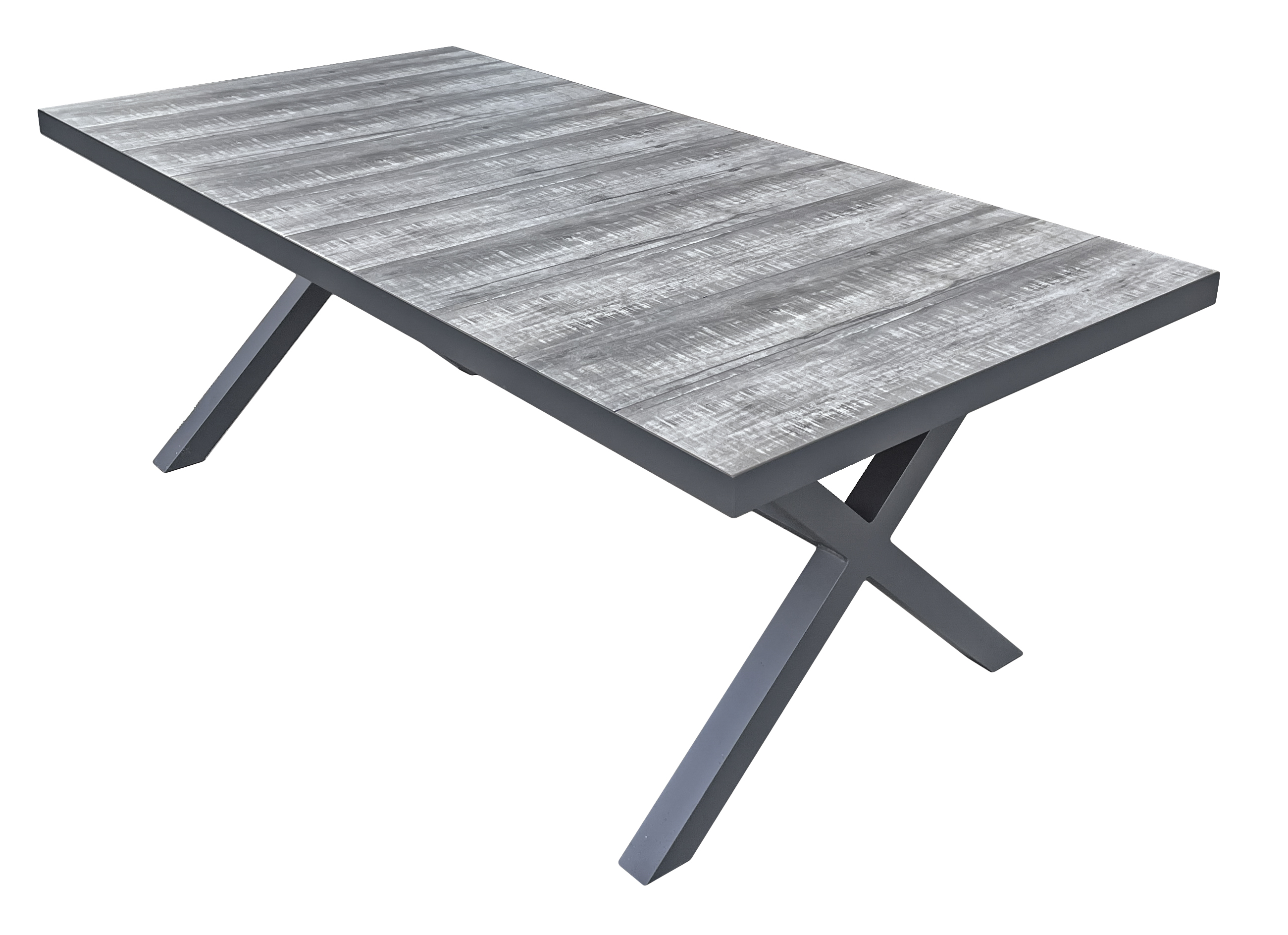 Die Tischgruppe RANA/SILEA ist die ideale Wahl für Ihr Outdoor-Esserlebnis. Der Tisch RANA zeichnet sich durch sein robustes Gestell aus dunkelgrauem Aluminium aus, das für Stabilität und Langlebigkeit sorgt. Die Tischplatte ist mit einem hochwertigen Keramikbelag in Eiche-Optik versehen, der nicht nur ansprechend aussieht, sondern auch wetterbeständig und leicht zu reinigen ist.