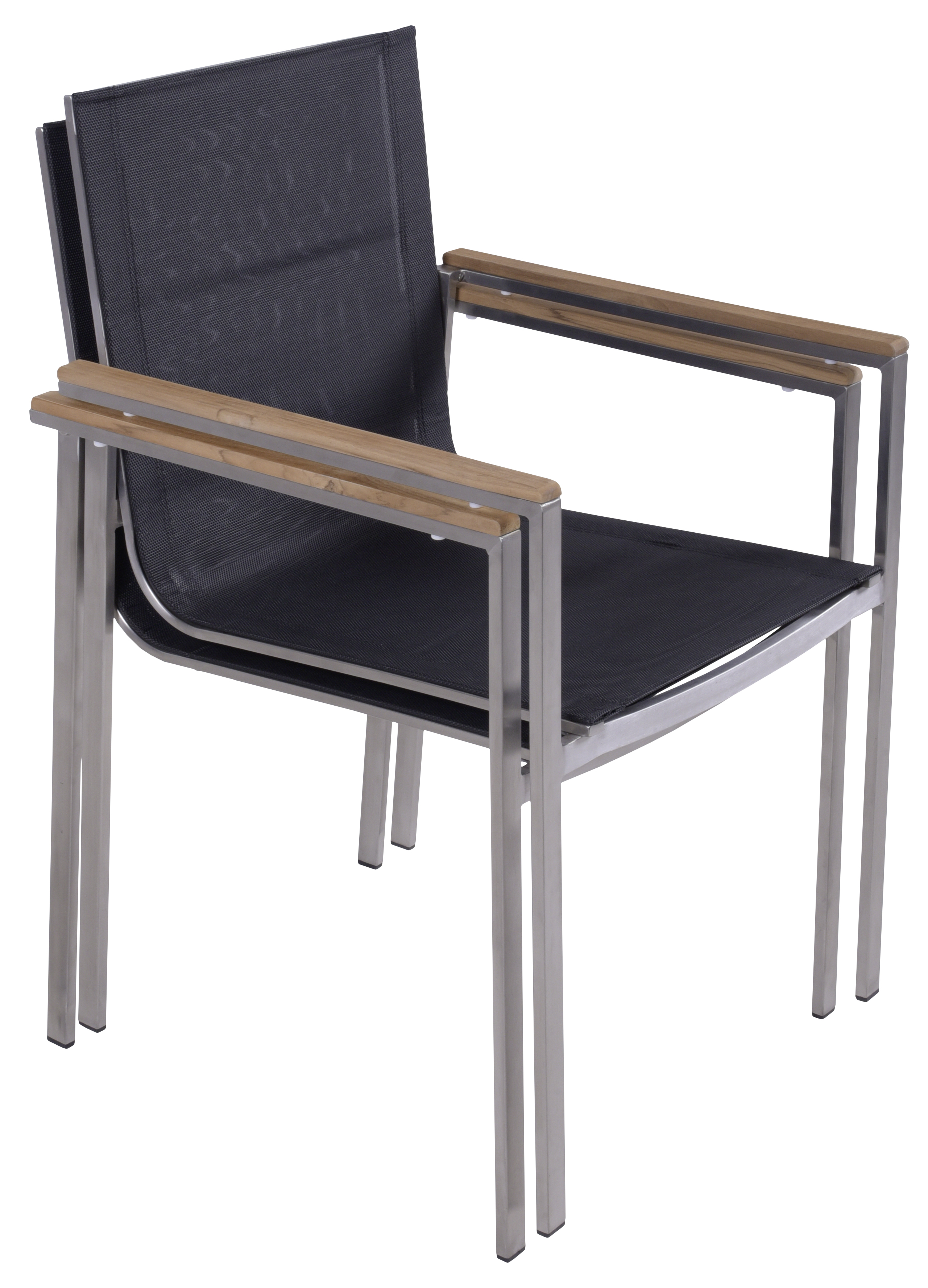 Edelstahl 304 gebürstet / Teak FSC 100%, 1 × Tisch 304943 | 6 × Stapelstuhl 304941