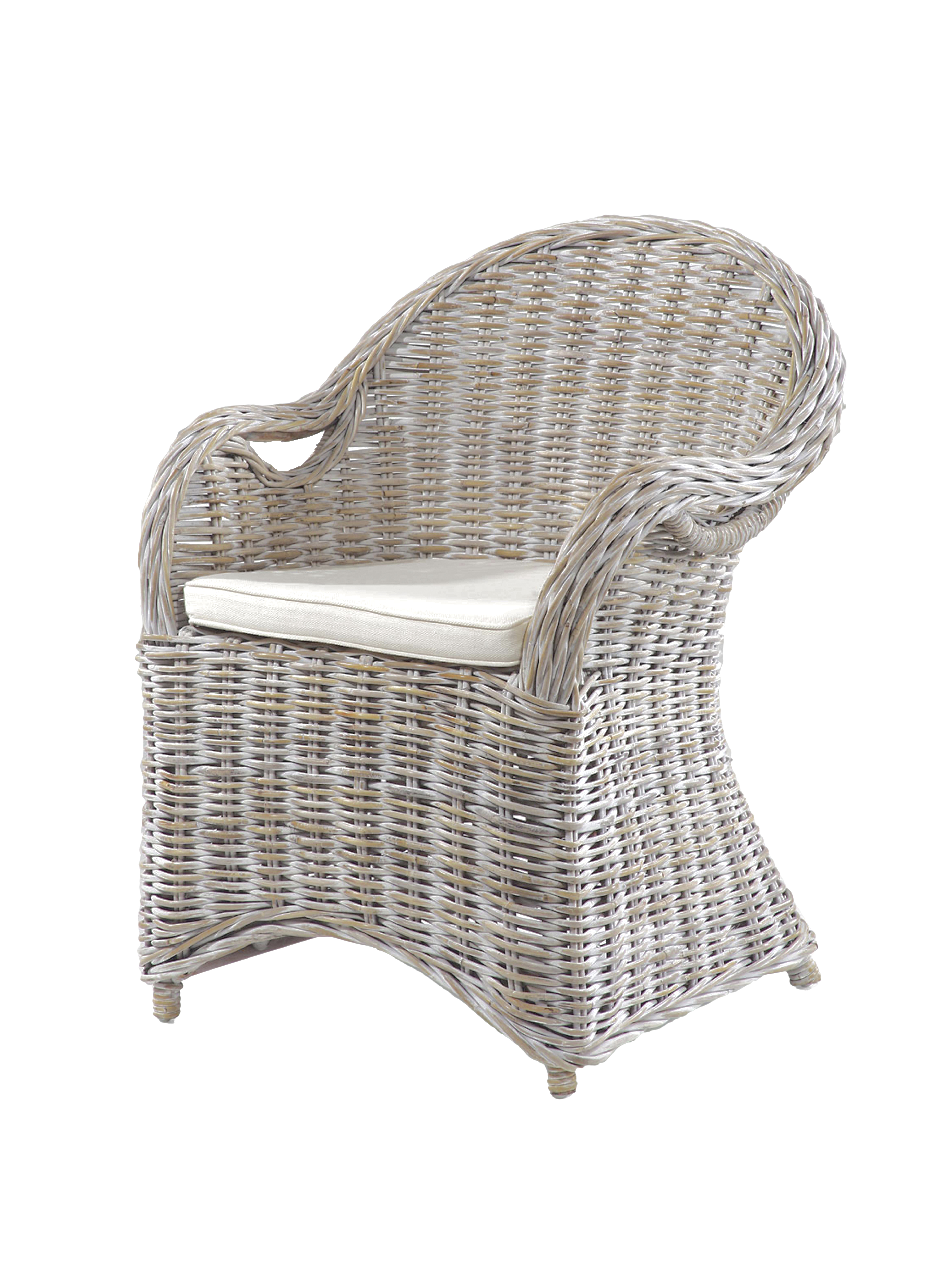 Die Sessel BREST sind aus white wash Kubu Grey Naturrattan gefertigt und mit weißen Sitzauflagen aus 100% Polyester ausgestattet. Die Kombination aus Naturrattan und weißem Stoff verleiht den Sesseln einen zeitlosen und ansprechenden Look, der sich gut in verschiedene Innenräume einfügt.