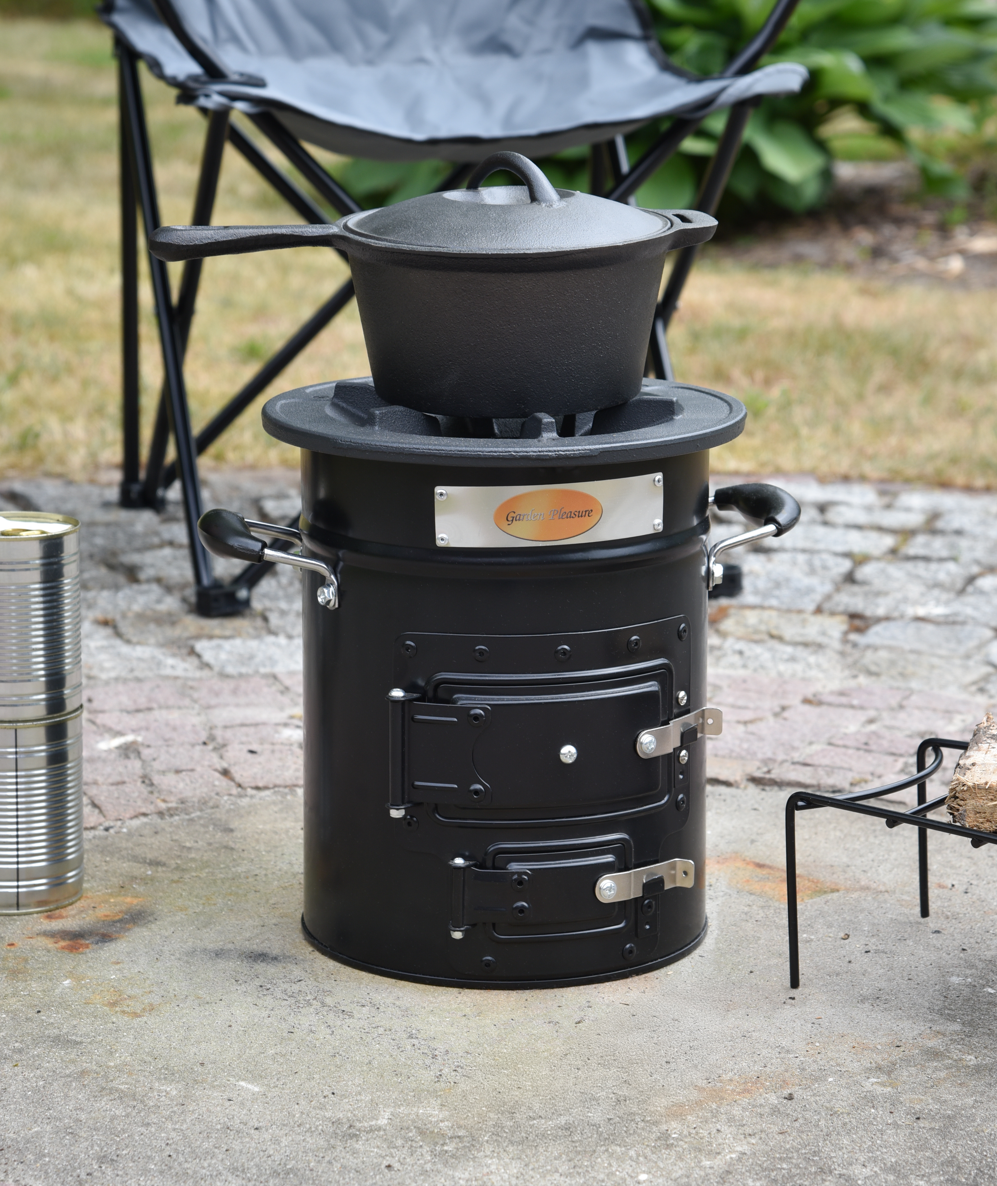 Der Raketenofen für unterwegs ist ein praktischer Holzofen aus Edelstahl, Gusseisen und Keramik. Er bietet eine mobile Möglichkeit, um Wärme zu erzeugen, ideal für Outdoor-Aktivitäten und Camping. Das kompakte Design und die robusten Materialien machen ihn besonders langlebig und effizient. Der Ofen lässt sich einfach transportieren und ist ein perfekter Begleiter für verschiedene Abenteuer im Freien.