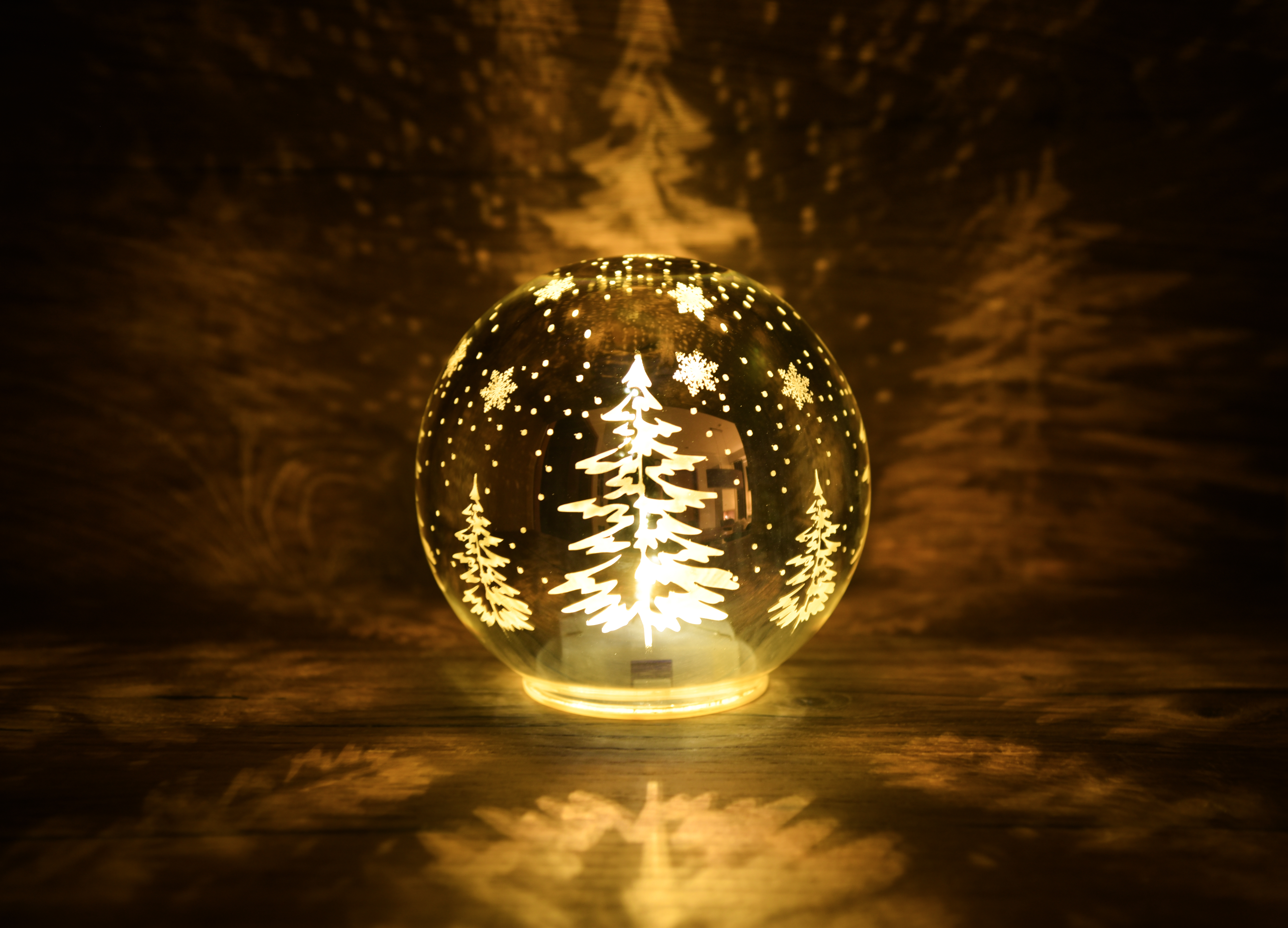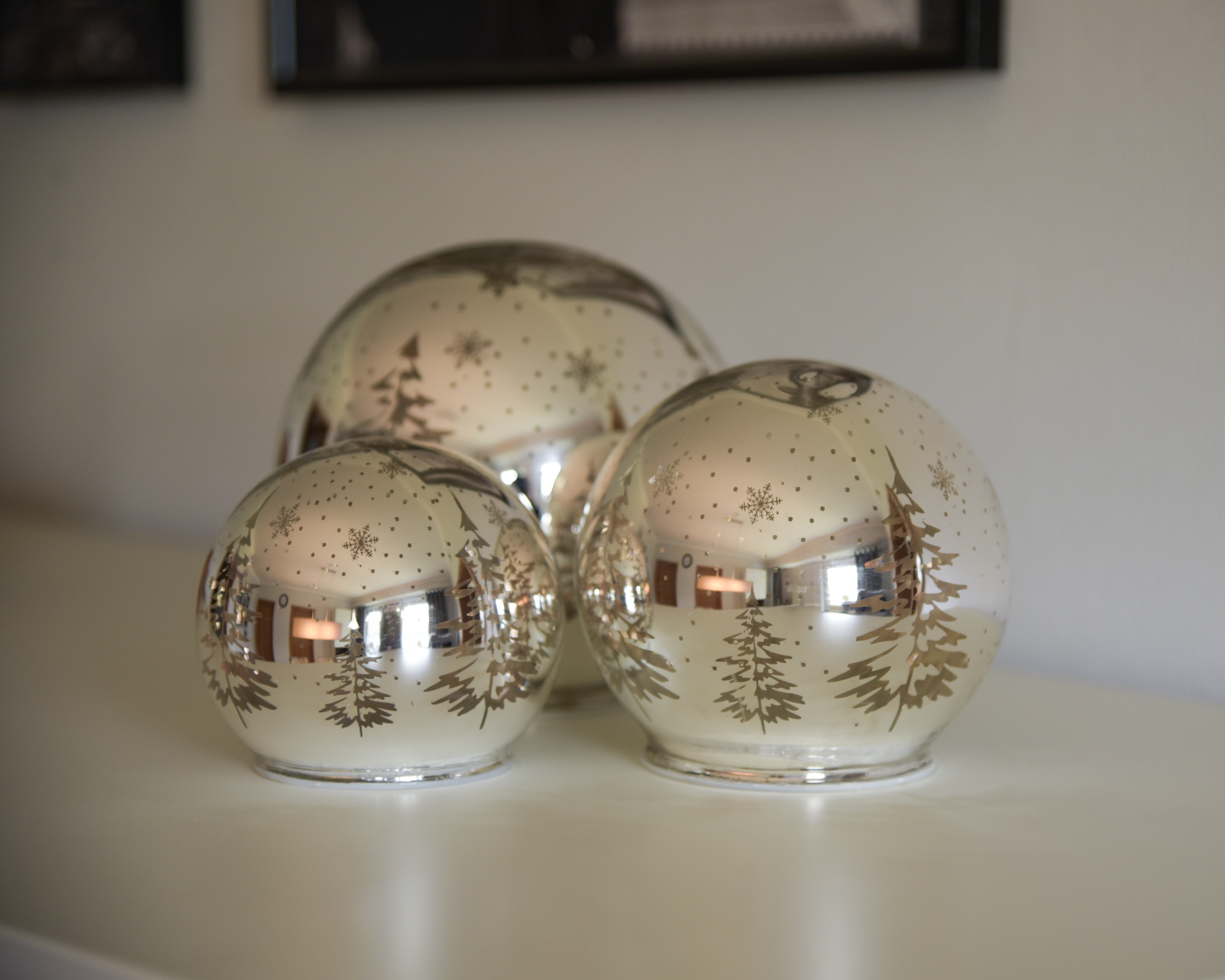 LED-Kugel Winterlandschaft, 3er-Set, metallisch aus Glas, Ø 10/13/15 cm