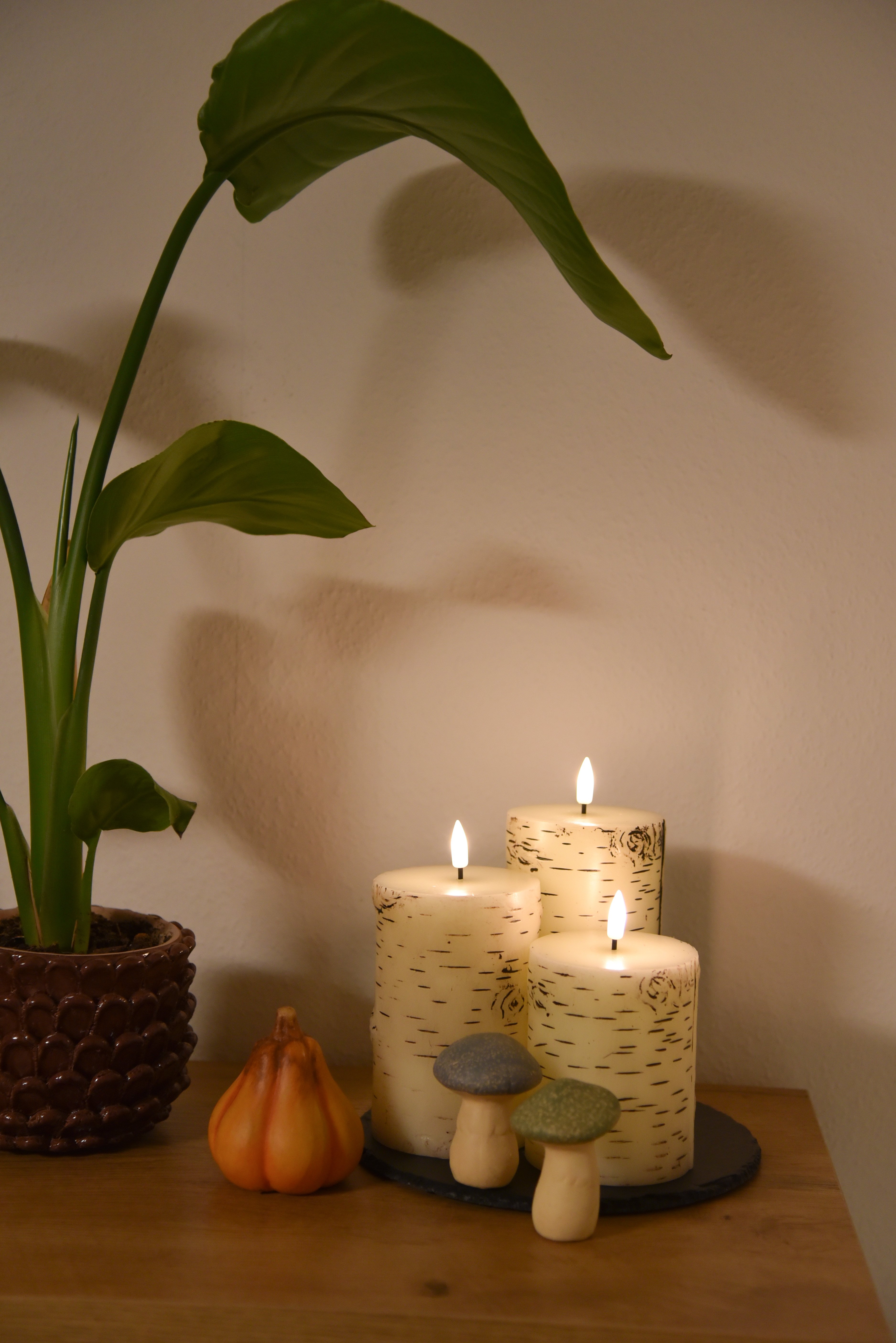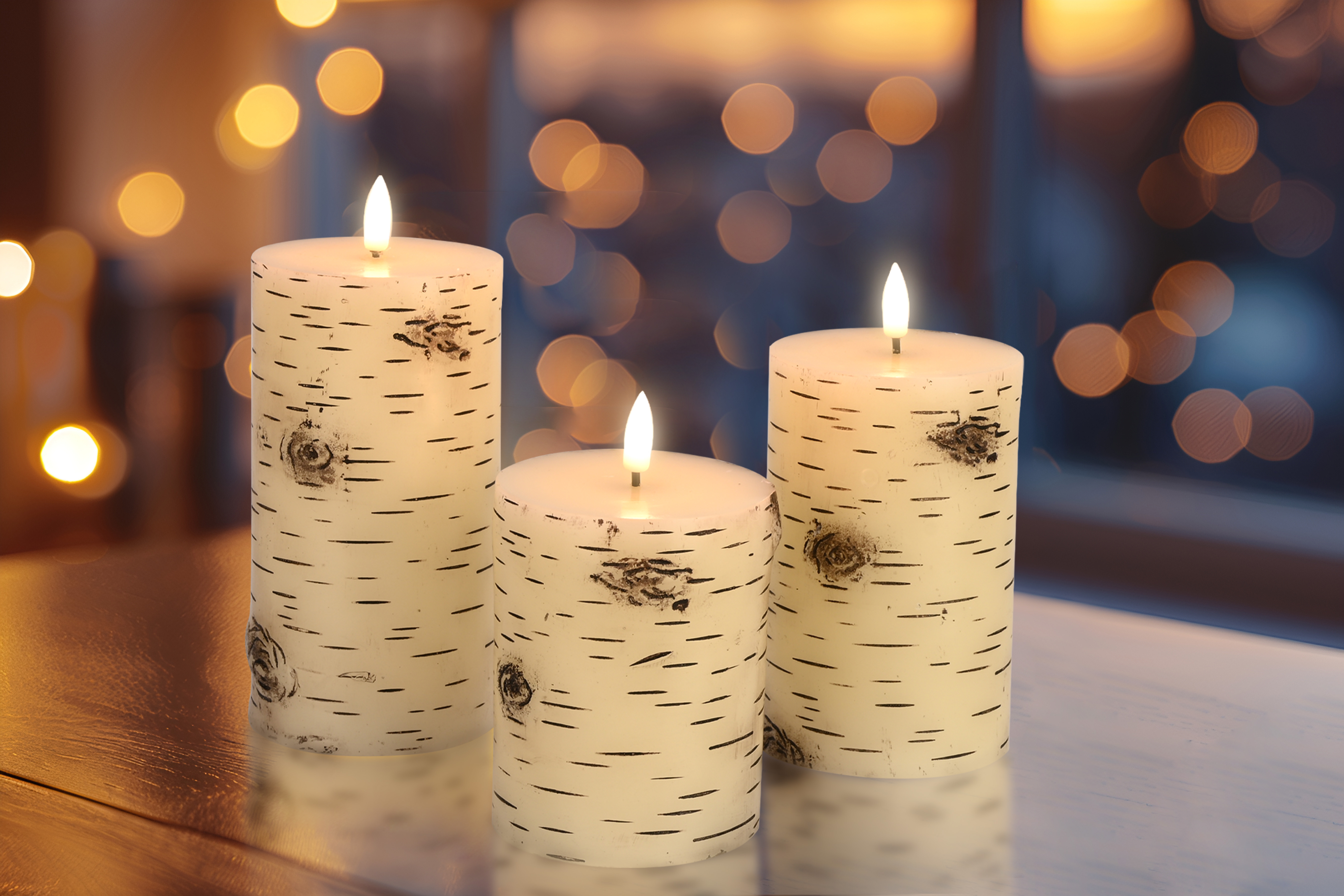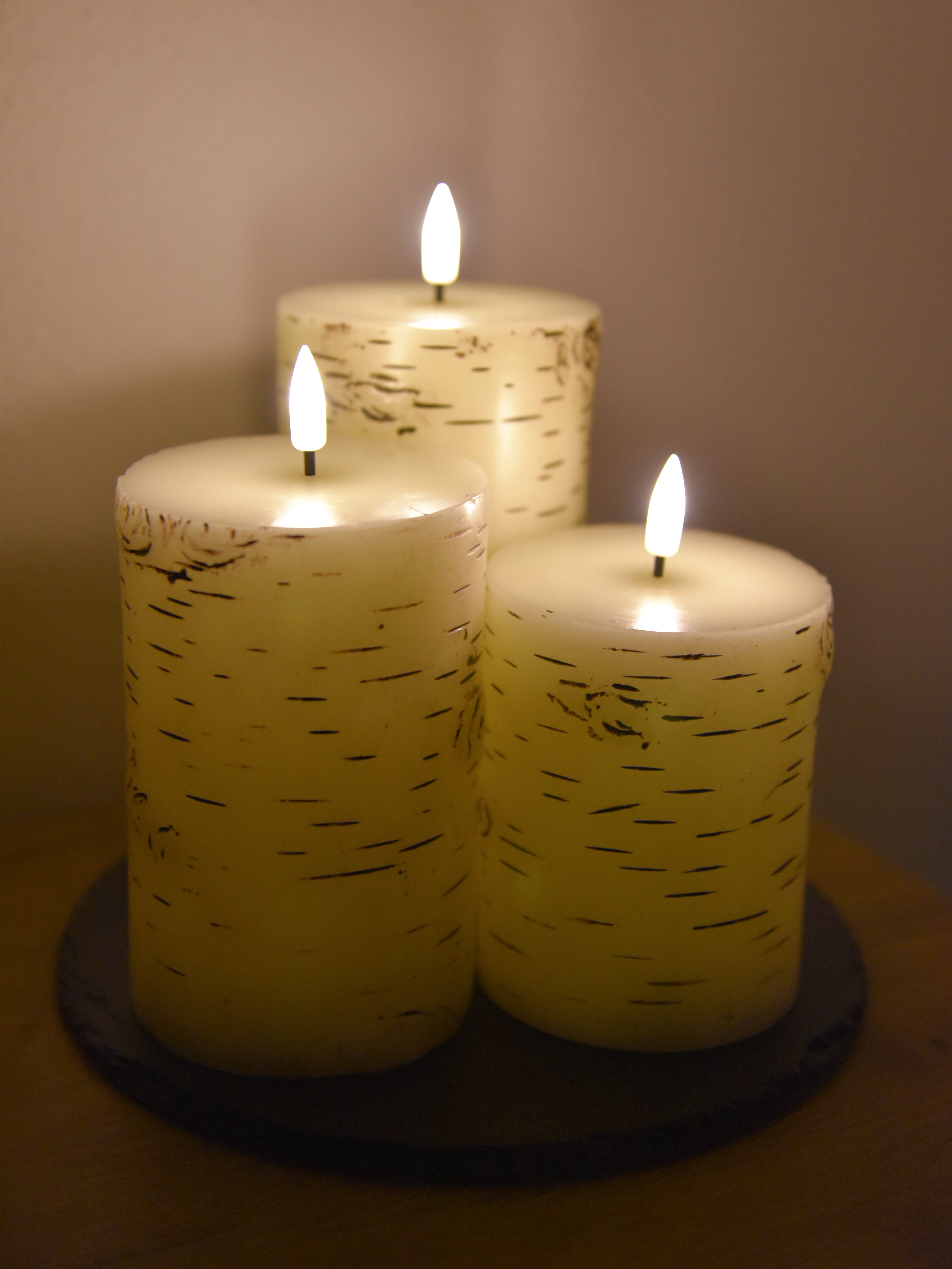 LED-Wachskerze 3er-Set, Birkenholzoptik