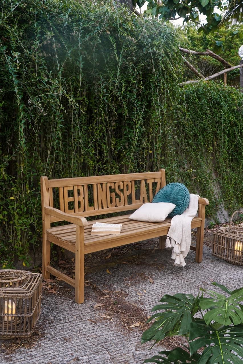 Manche Möbelstücke erzählen Geschichten, noch bevor man Platz nimmt. Die Bank LIEBLINGSPLATZ ist genau so ein Stück – charmant, einladend und voller Charakter. Ob im Garten, auf der Terrasse oder vor dem Haus: Sie macht jeden Ort zu etwas Besonderem. Mit ihrem liebevoll gestalteten Schriftzug erinnert sie daran, was wirklich zählt – gemeinsame Momente, Ruhepausen und kleine Auszeiten vom Alltag. Ein echtes Statement für alle, die das Draußensein lieben. Setz dich. Lehn dich zurück. Und genieße deinen neuen Lieblingsplatz.