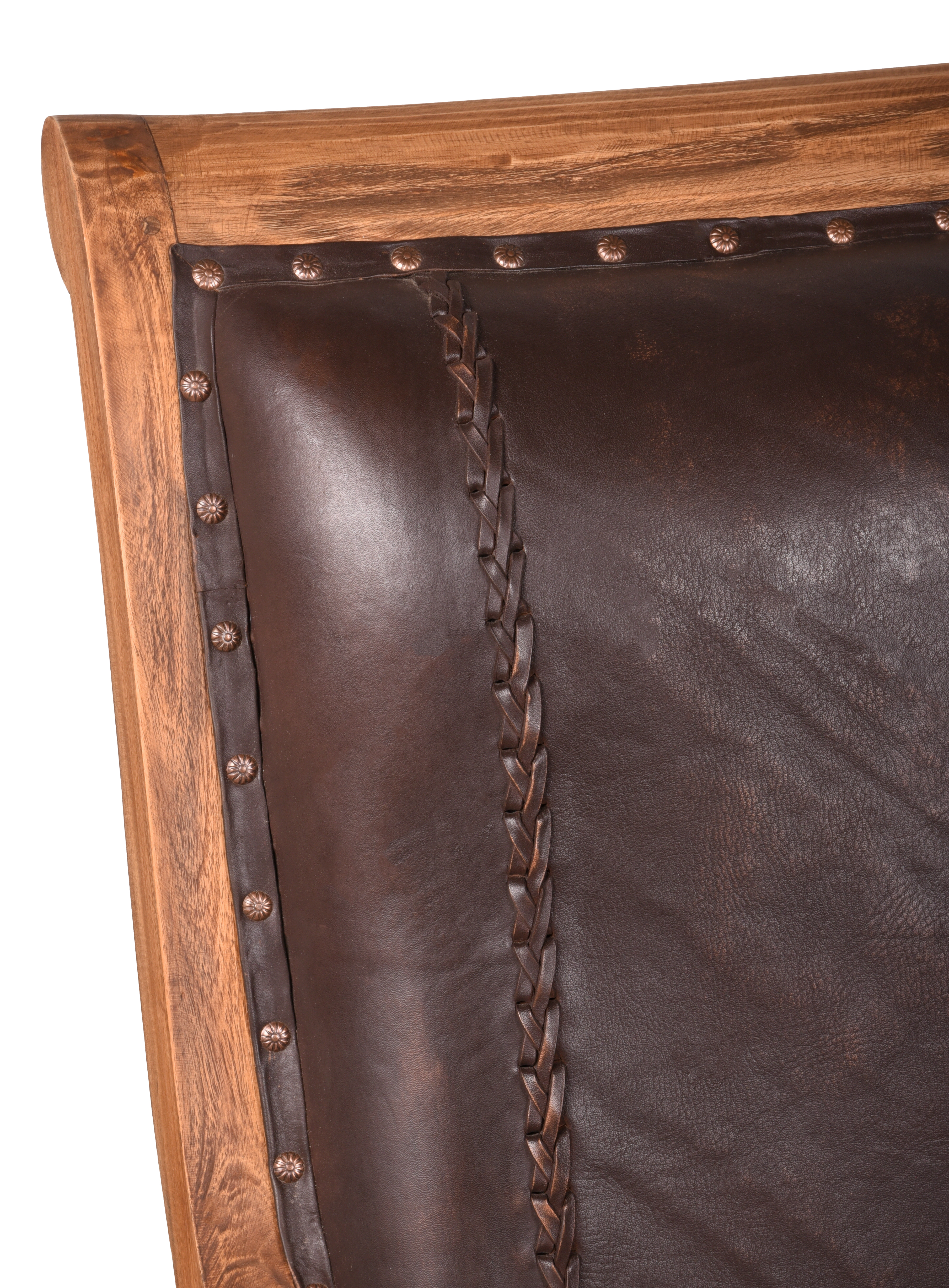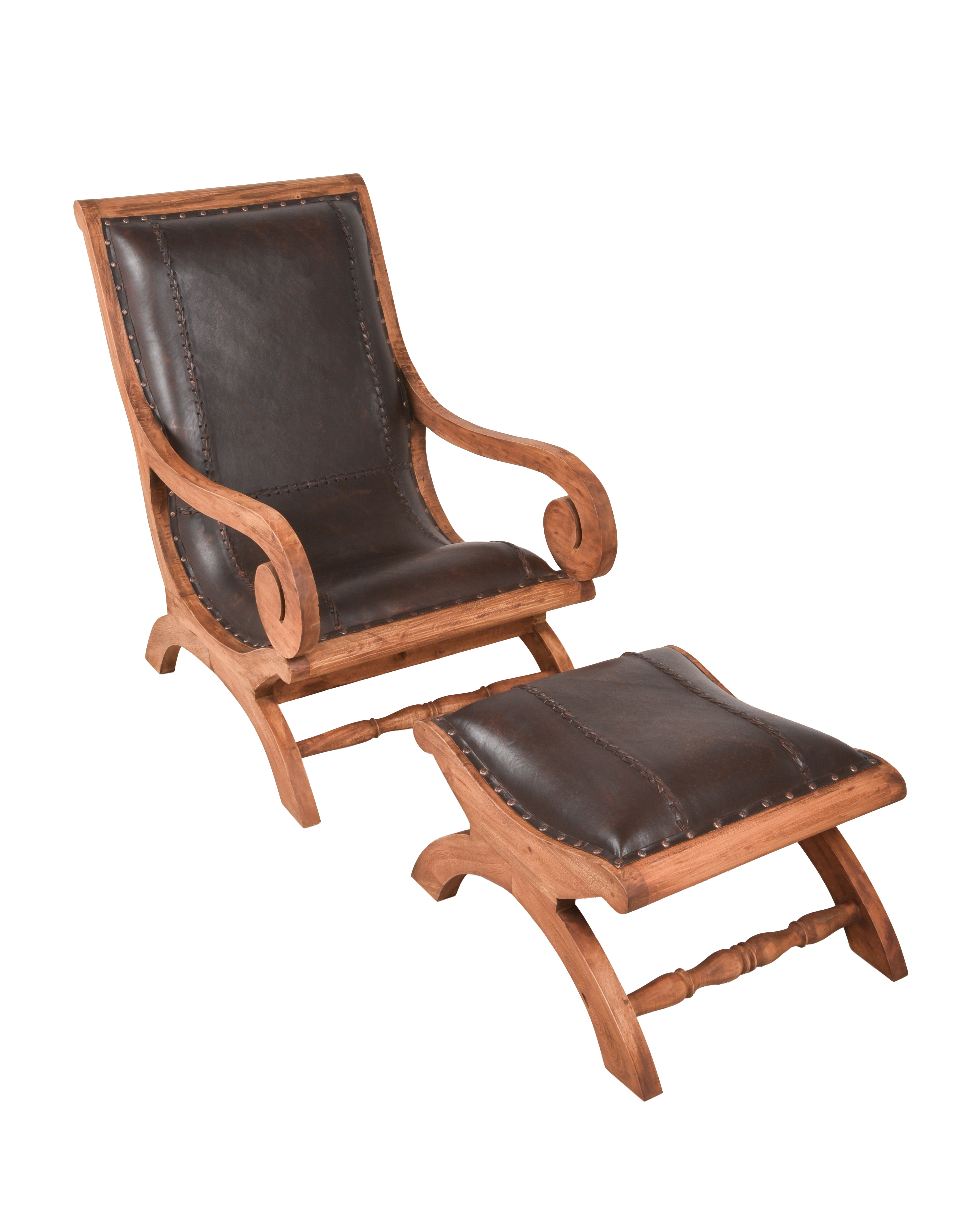 Der Ledersessel mit Hocker Bahia zeichnet sich durch eine hochwertige Verarbeitung aus Mahagoniholz und Leder aus. Die Kombination aus einem eleganten natürlichen Finish und einem antiken Look verleiht diesem Möbelstück eine zeitlose Schönheit. Der Sessel sorgt für Komfort und Stil und ist ein ausgezeichnetes Möbelstück für jedes Wohnzimmer oder Büro. Der passende Hocker rundet das Set ab und bietet zusätzlichen Komfort.