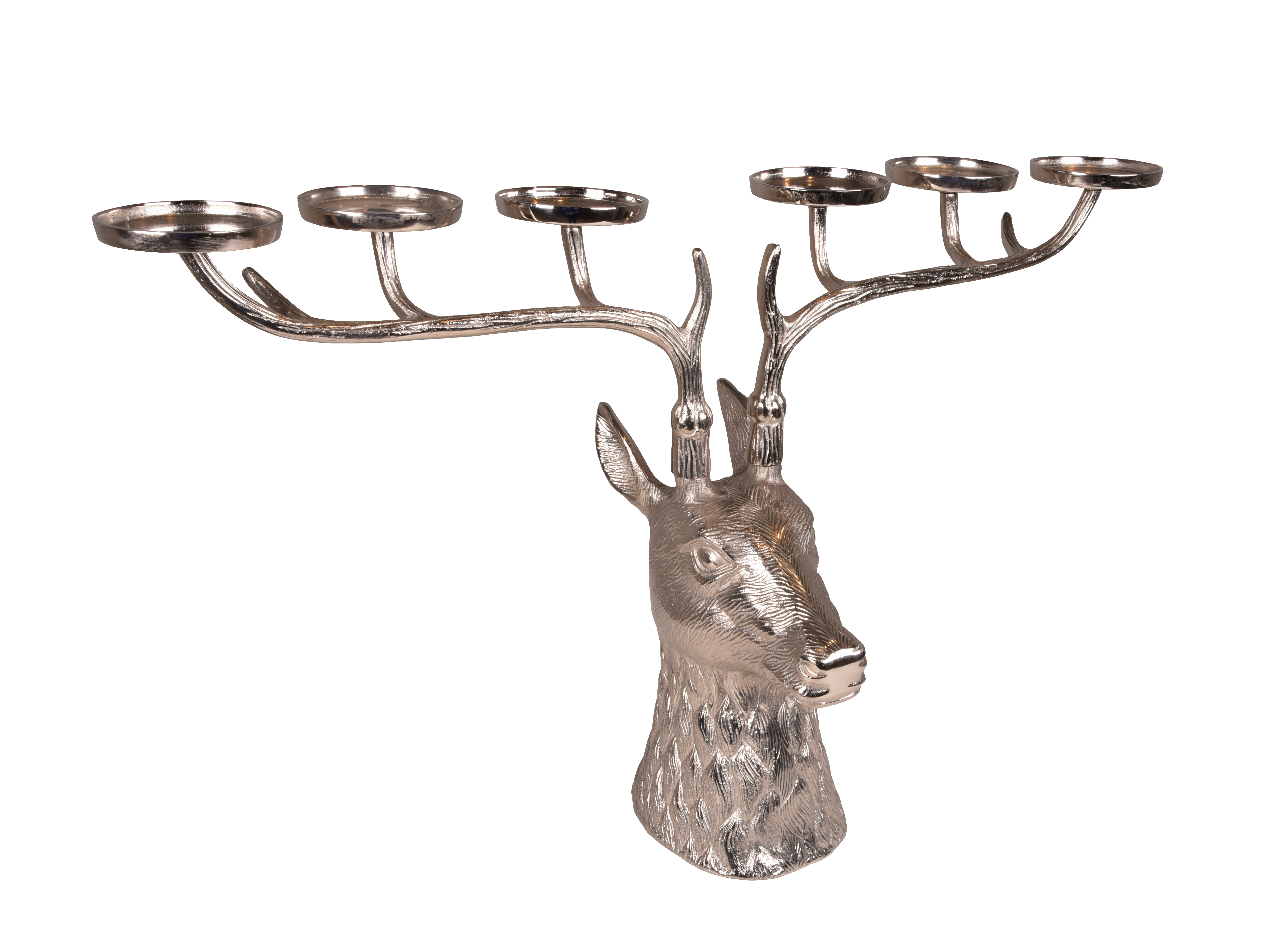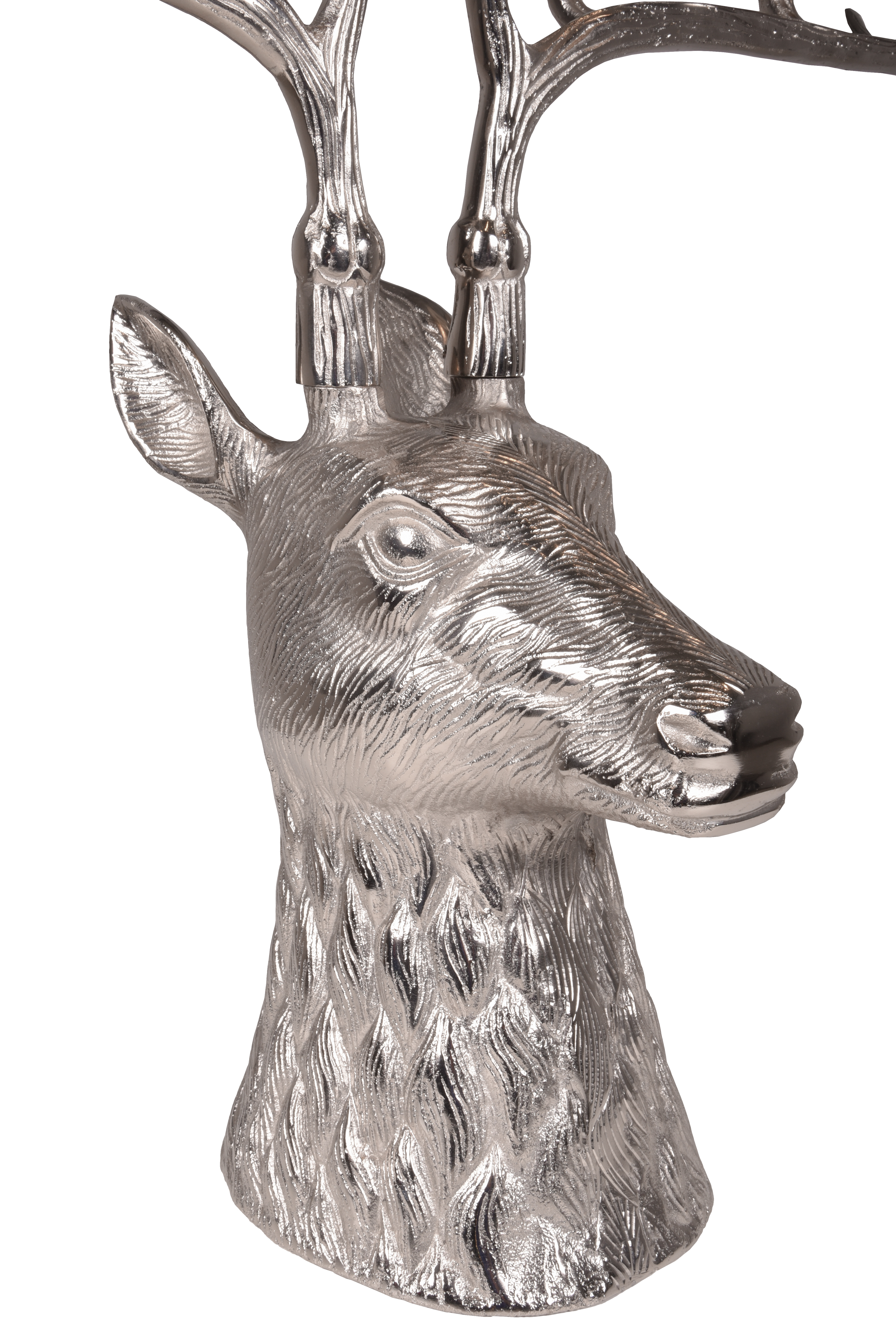 Verleihen Sie Ihrem Zuhause eine besondere Atmosphäre mit dem stilvollen Kerzenhalter. Dieses kunstvoll gefertigte Dekorstück aus hochwertigem Aluminium verbindet modernes Design mit dem zeitlosen Charme der Natur. Die majestätische Hirschform wird zum Blickfang in jedem Raum und passt sich perfekt an verschiedene Einrichtungsstile an, egal ob rustikal oder modern. Mit Platz für sechs Kerzen sorgt der Kerzenhalter für ein stimmungsvolles Licht, das ideal für romantische Abende, festliche Anlässe oder gemütliche Stunden ist. Gefertigt aus langlebigem Aluminium, überzeugt er nicht nur durch seinen edlen, silbrigen Glanz, sondern auch durch seine einfache Pflege. Ob als dekorativer Mittelpunkt auf Ihrem Esstisch oder als stilvolles Geschenk für besondere Anlässe – der Kerzenhalter ist die perfekte Wahl für alle, die das Besondere lieben. Lassen Sie sich von diesem außergewöhnlichen Design verzaubern und verleihen Sie Ihrem Zuhause eine einzigartige Note!