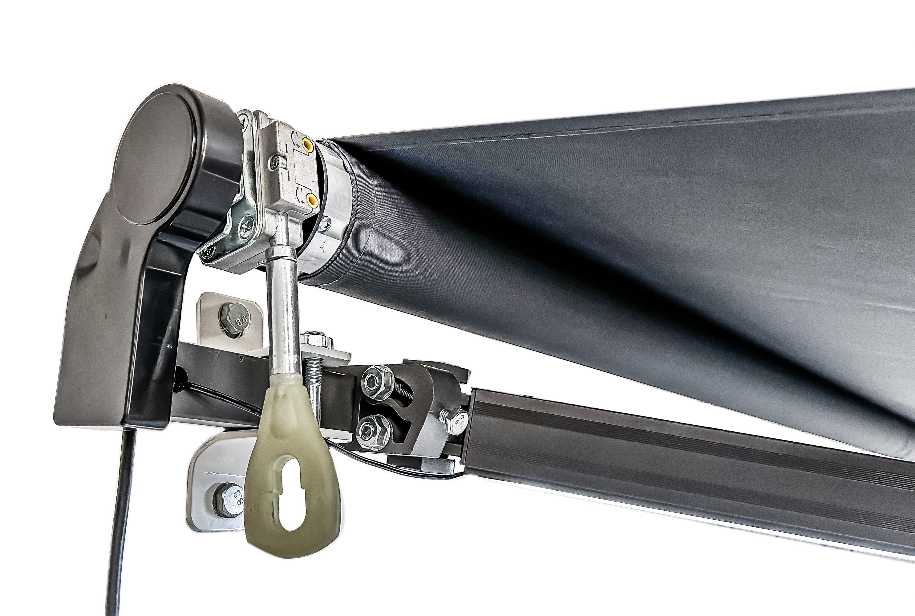 Über die leichtgängige Stahlkurbel lässt sich die Markise stufenlos ein- und ausfahren, sodass der Schatten jederzeit flexibel angepasst werden kann. Die Gelenkarme aus Aluminium halten das Tuch gleichmäßig gespannt und ermöglichen eine angenehme, großzügige Beschattung ohne störende Stützen. Dank der geraden Kante wirkt die Markise optisch klar und fügt sich harmonisch in unterschiedliche Außenbereiche ein. Insgesamt ist diese Markise eine praktische und langlebige Lösung für alle, die Funktionalität, Schutz und ein zeitloses Design miteinander verbinden möchten.