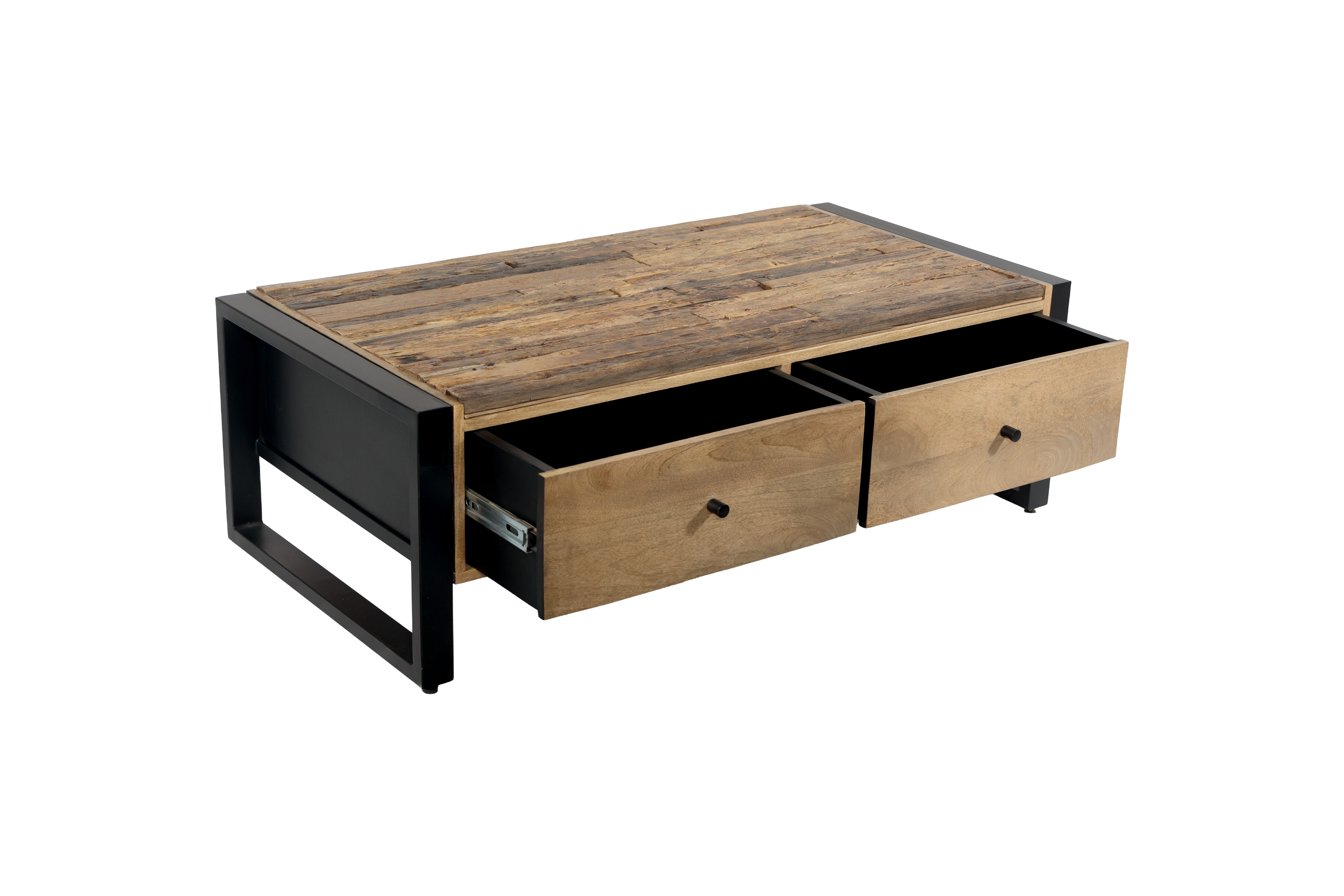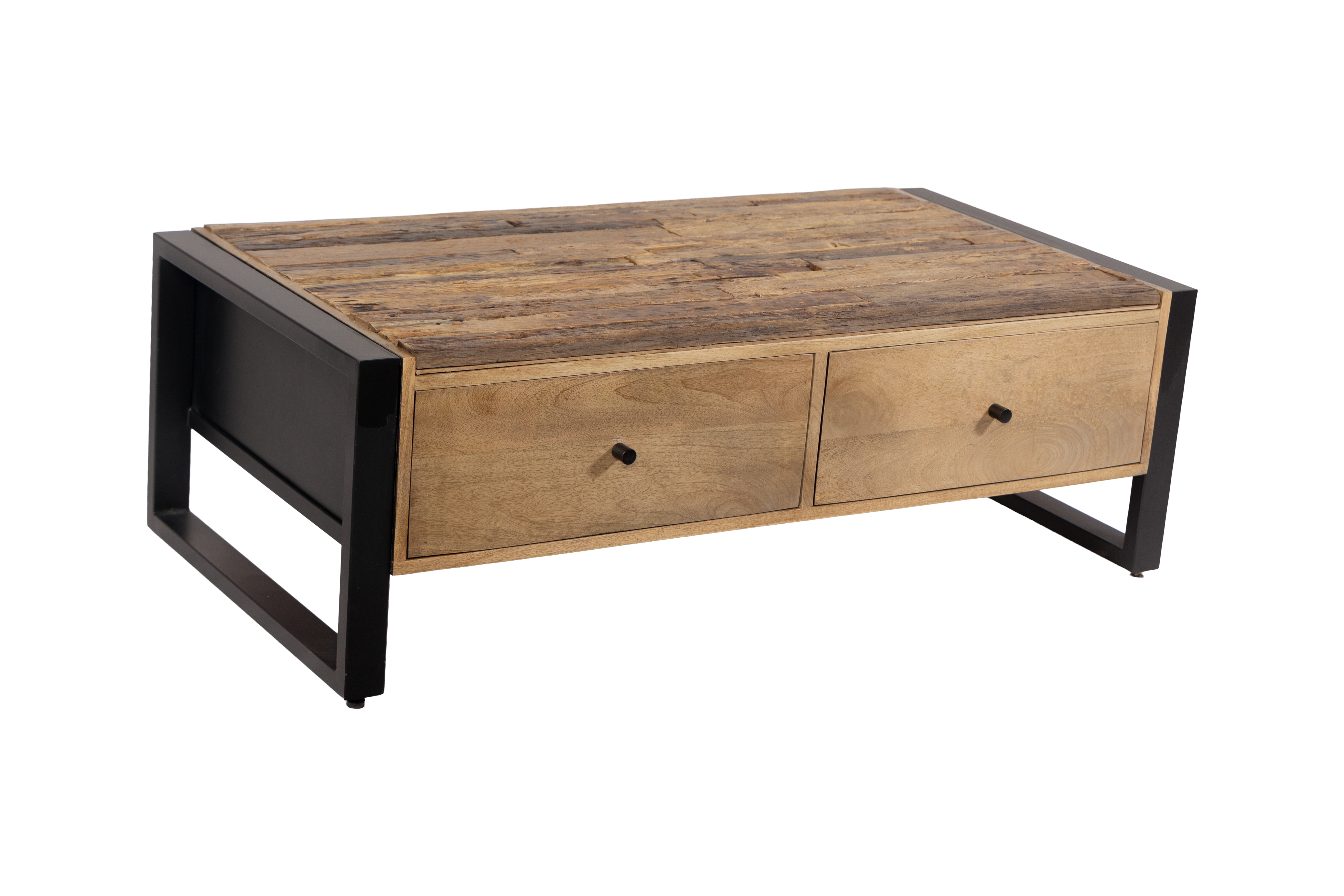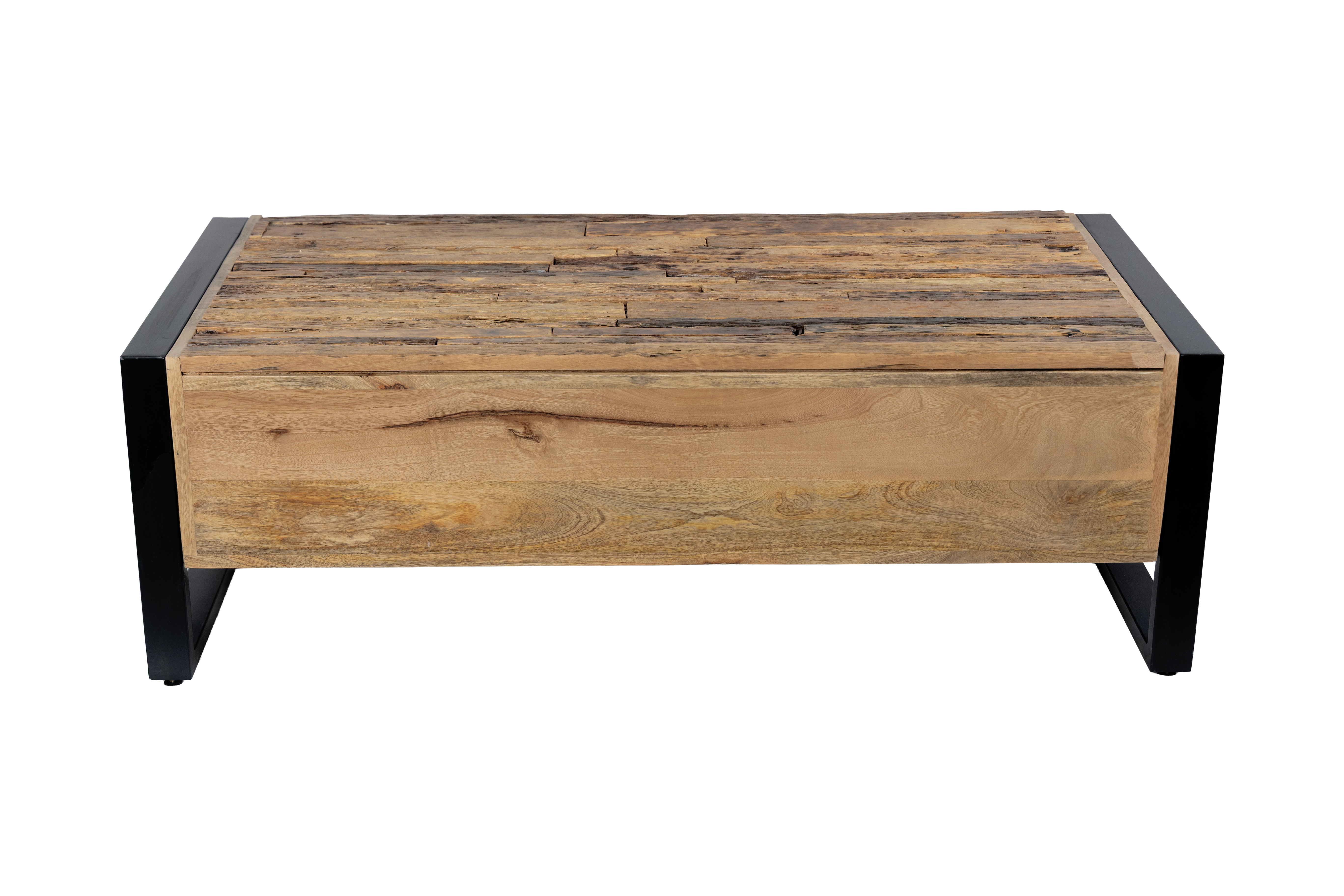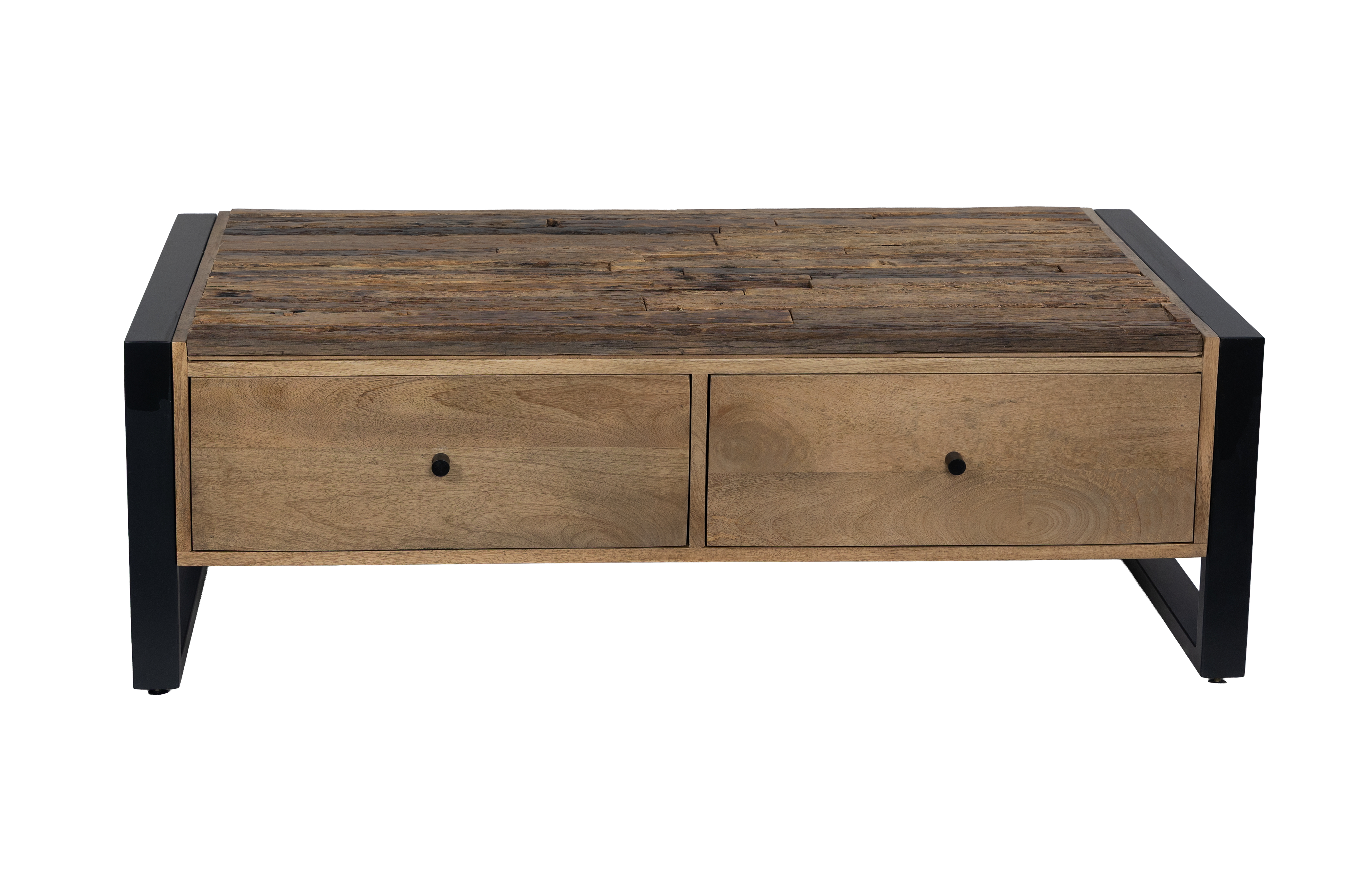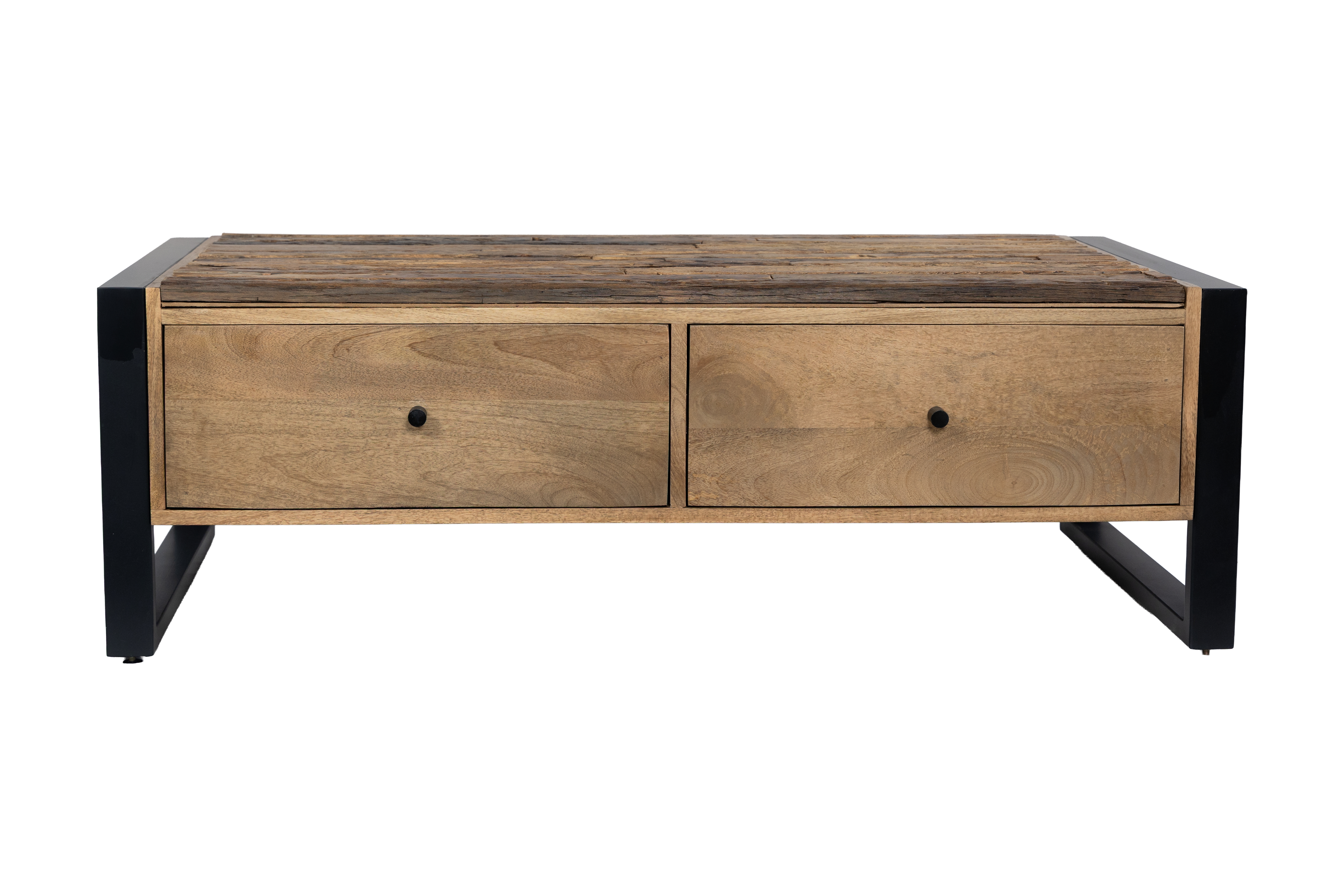 Das stabile Gestell aus Eisen in schwarz matter Optik bildet einen eleganten Kontrast zum natürlichen Holz und sorgt zugleich für hohe Standfestigkeit und Langlebigkeit. Die gelungene Kombination aus Holz und Metall macht den Couchtisch MAYA zu einem vielseitigen Möbelstück, das sowohl in moderne als auch in industrielle oder natürliche Wohnkonzepte passt.