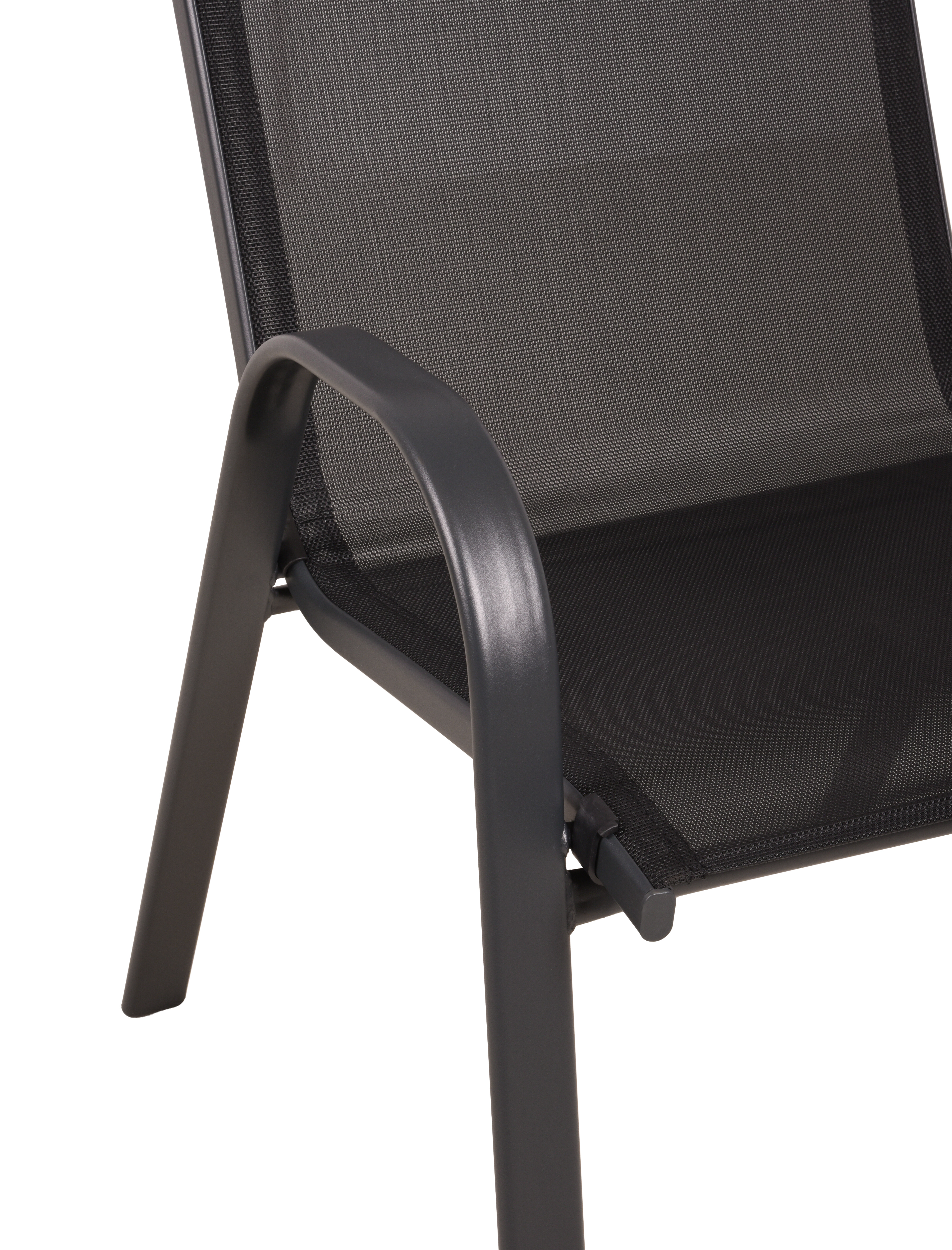 Der Stapelstuhl RIONA überzeugt durch seine moderne Optik, funktionales Design und robuste Materialien. In der eleganten Farbkombination Anthrazit und Matt-Schwarz fügt er sich harmonisch in jede Garten-, Terrassen- oder Balkongestaltung ein.