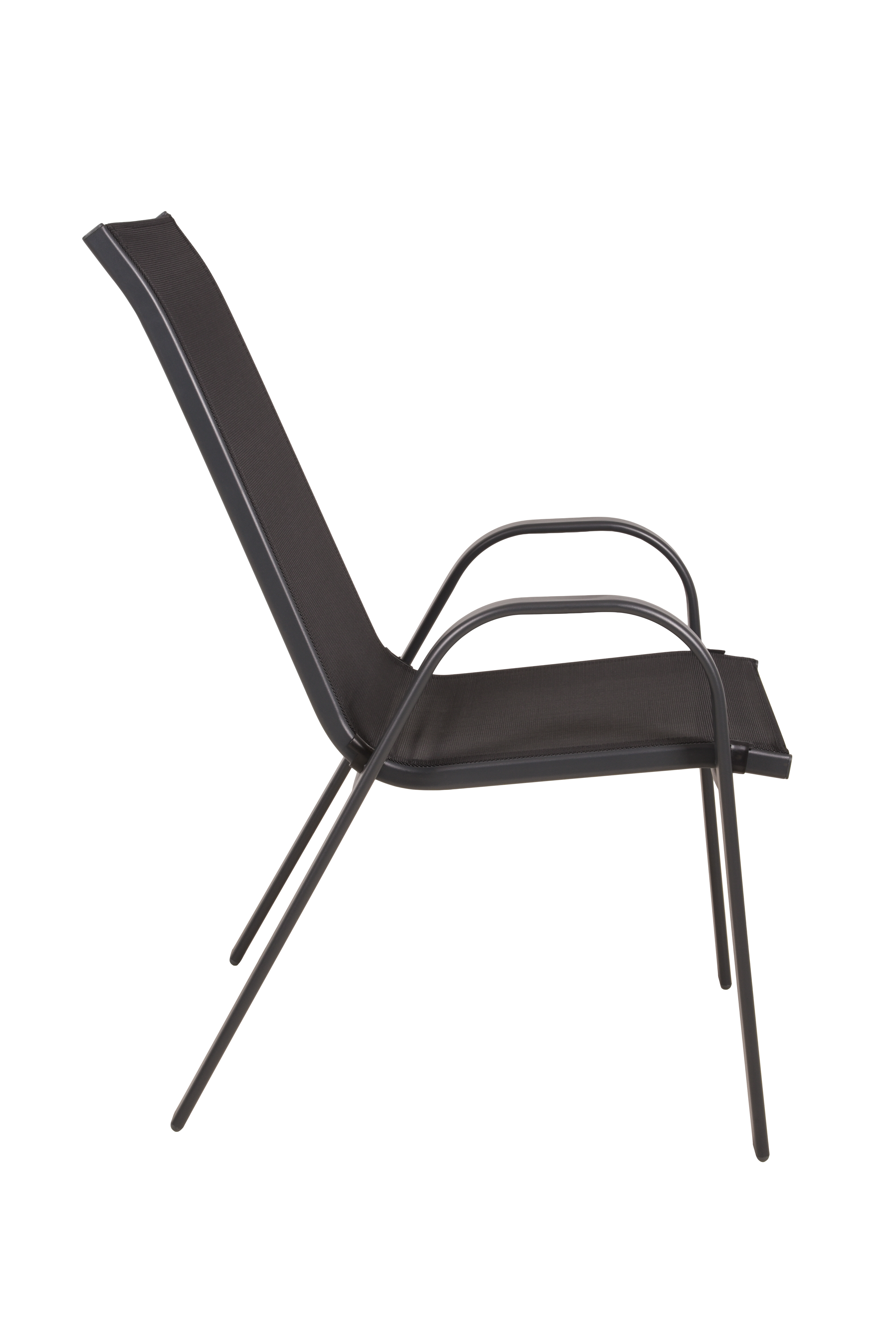 Das stabile Stahlgestell ist anthrazit pulverbeschichtet und dadurch besonders widerstandsfähig gegenüber Witterungseinflüssen sowie langlebig im täglichen Gebrauch. Sitz- und Rückenfläche bestehen aus hochwertigem Polyethylen in matt Schwarz, das sich angenehm an den Körper anpasst, pflegeleicht ist und eine moderne, zeitlose Ausstrahlung besitzt.