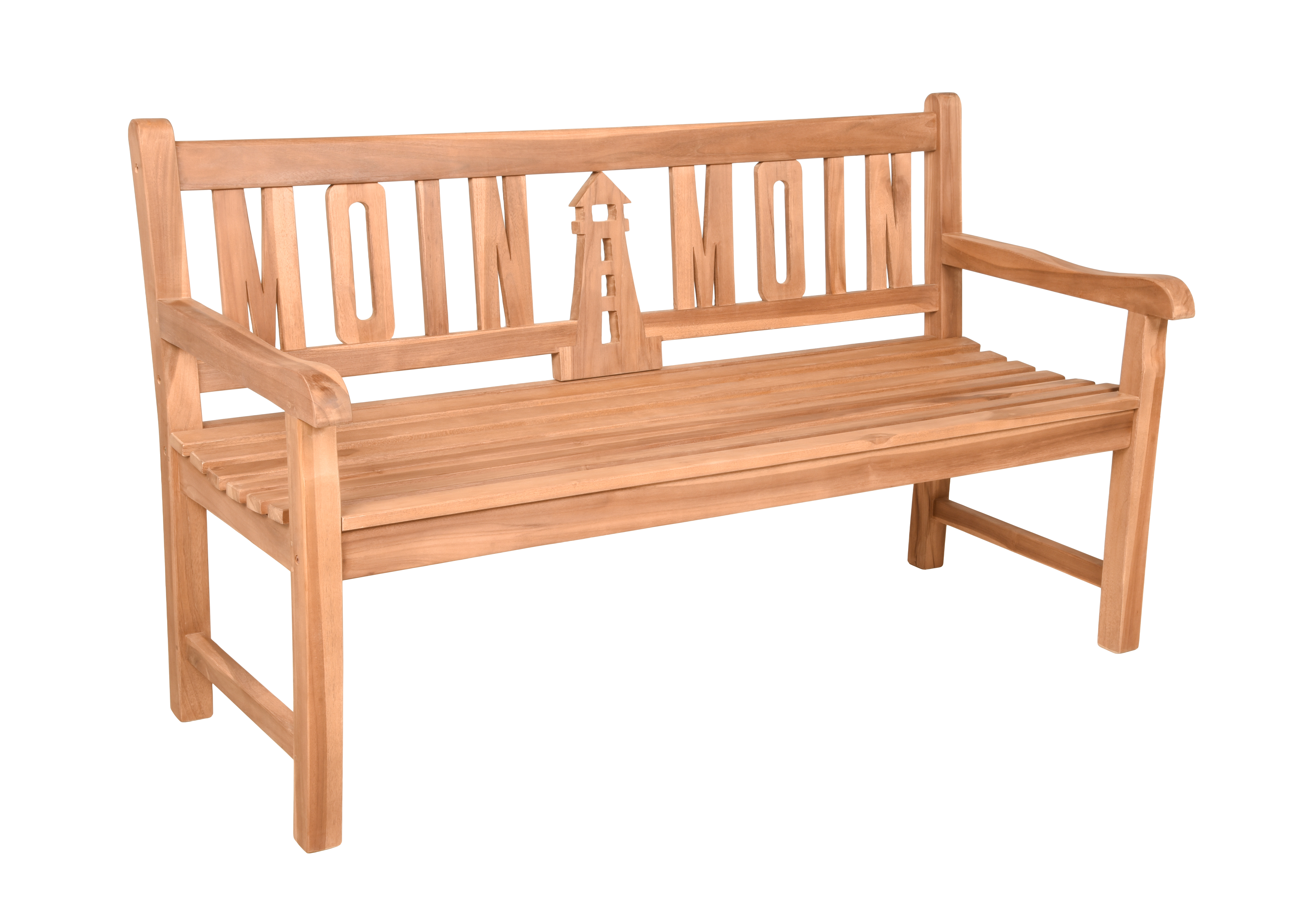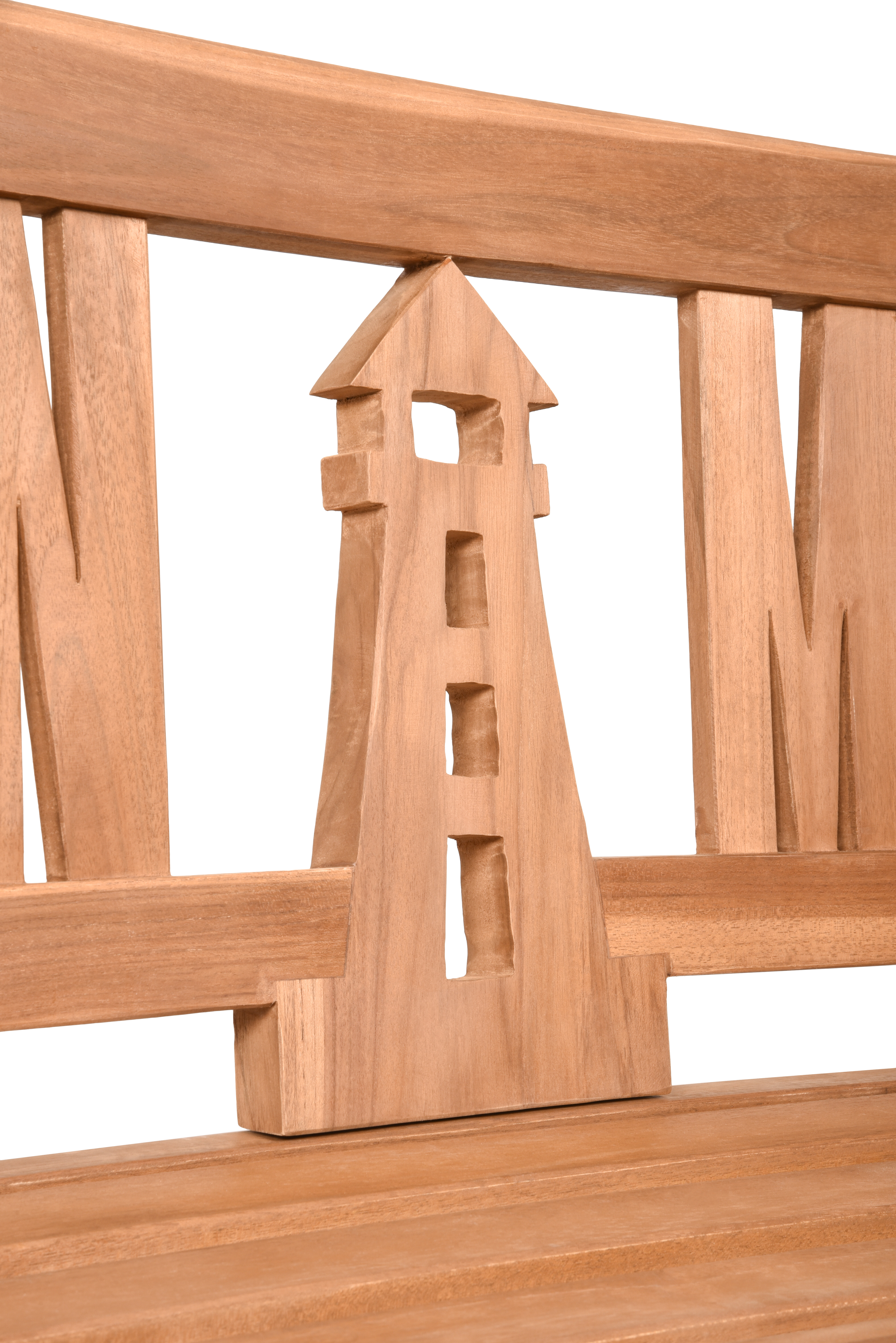 Bank MOIN MOIN – 3-Sitzer mit Leuchtturmmotiv aus Teakholz, natur