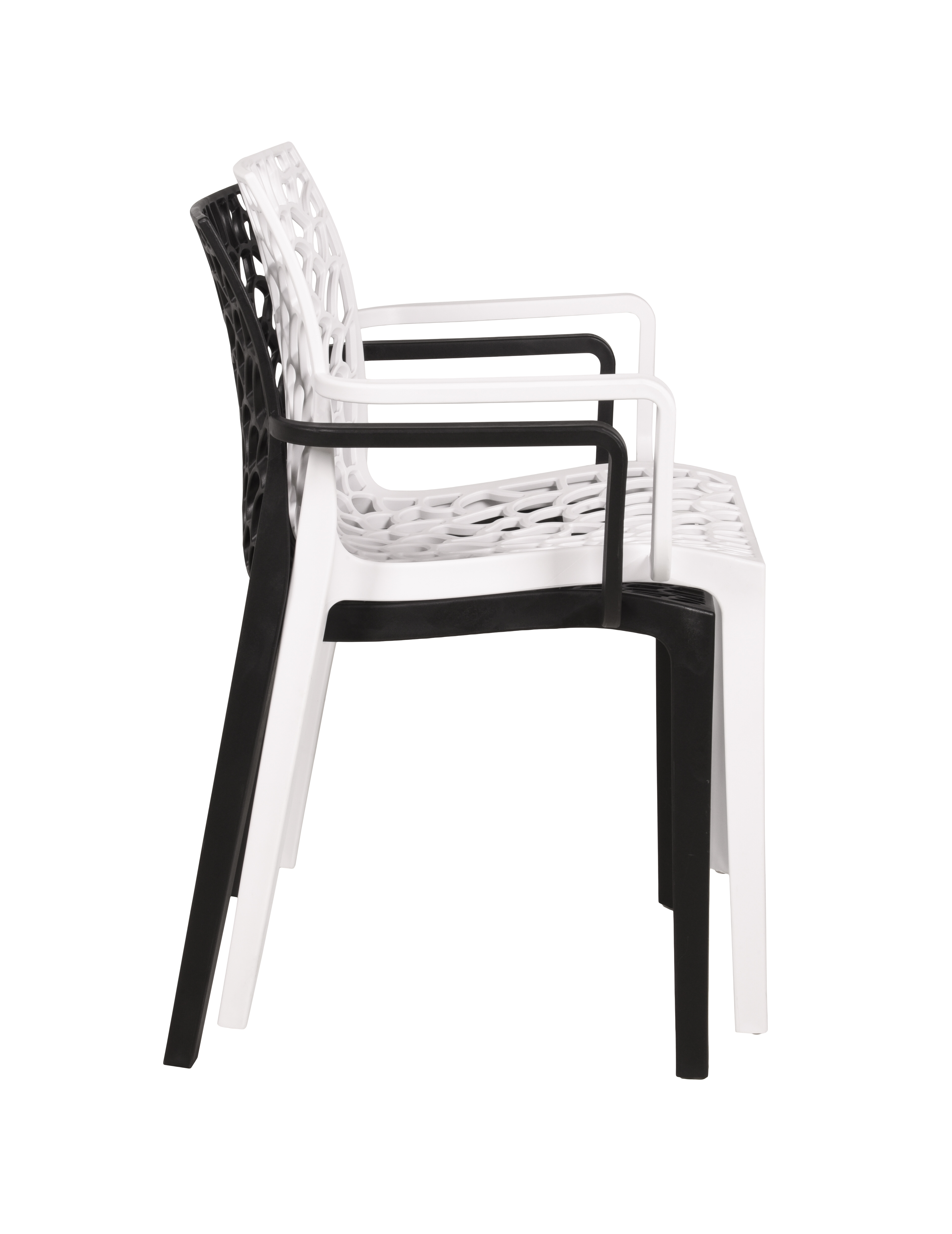 Das zeitlose Design in elegantem Schwarz fügt sich mühelos in unterschiedliche Wohn- und Gartenkonzepte ein. Praktisch im Alltag: Die Stühle sind stapelbar, wobei maximal 4 Stück platzsparend übereinander gestapelt werden können – ideal für eine flexible Nutzung und eine einfache Aufbewahrung.