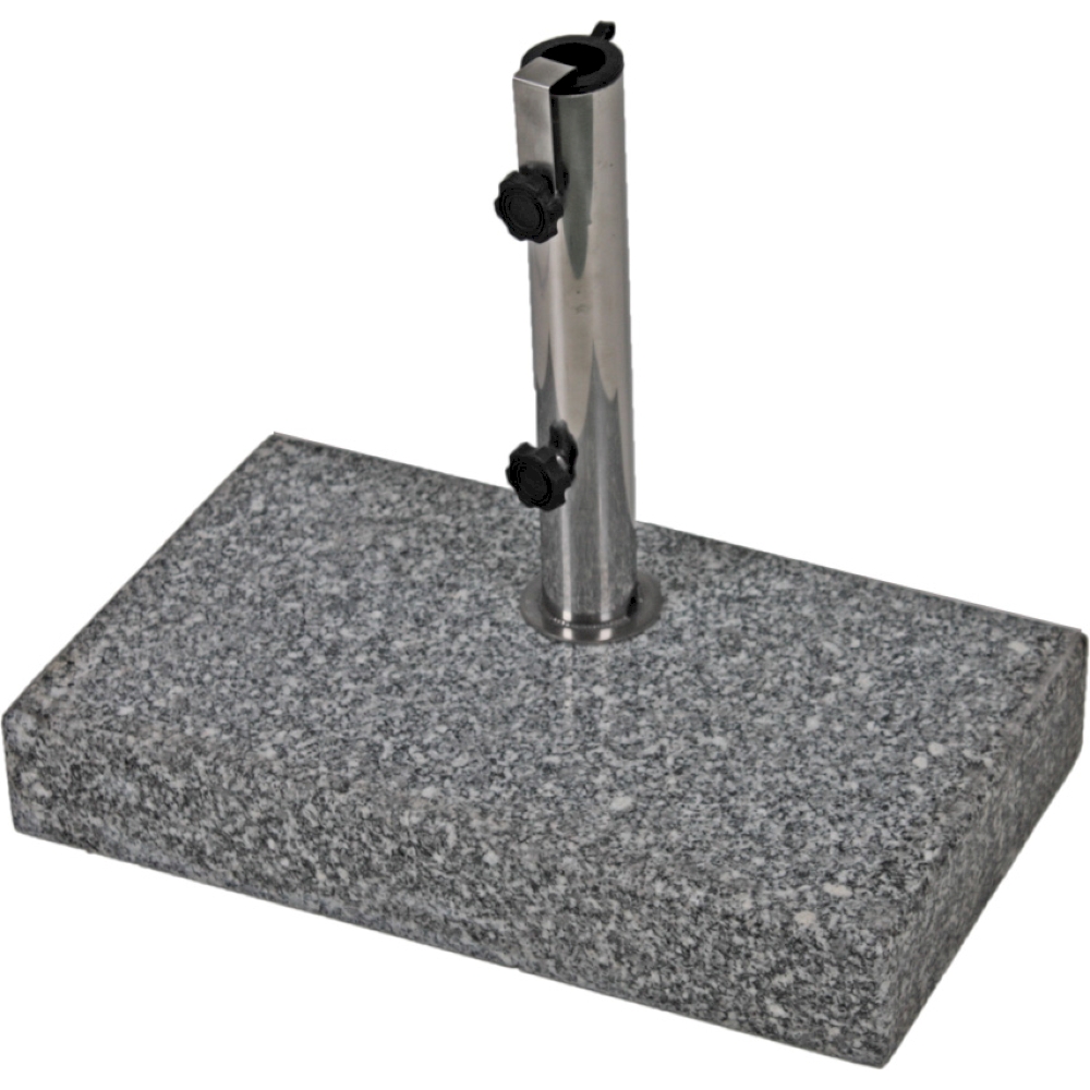 Hergestellt aus hochwertigem Granit und Edelstahl ist der Schirmständer langlebig und witterungsbeständig.