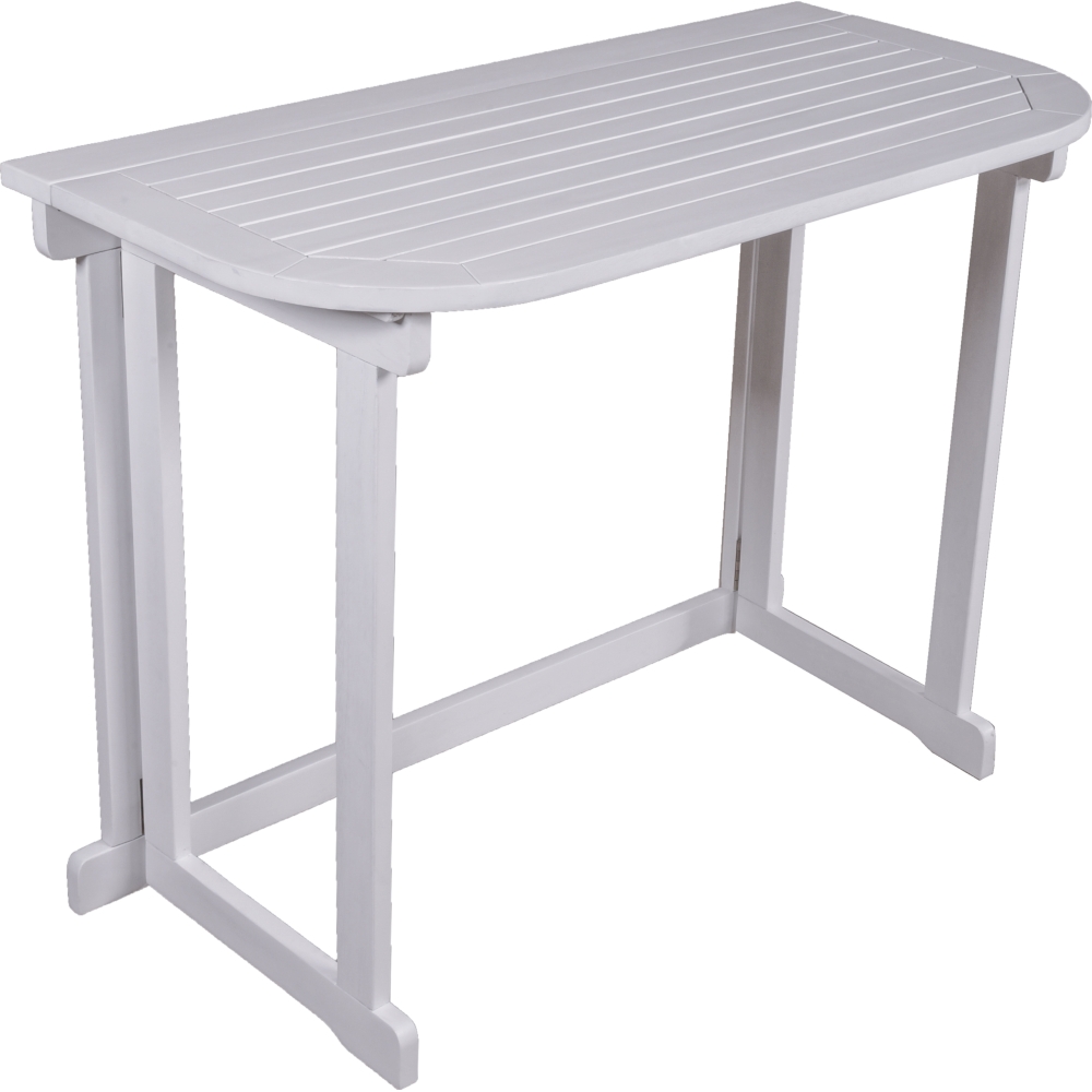 Der Balkon-Tisch MANILA ist die perfekte Ergänzung für Ihren Balkon oder Ihre kleine Terrasse. Hergestellt aus hochwertigem Eukalyptus Grandis Holz, das FSC-zertifiziert ist und ein weißes Finish erhalten hat, bietet dieser Tisch eine Kombination aus natürlicher Schönheit und modernem Design.