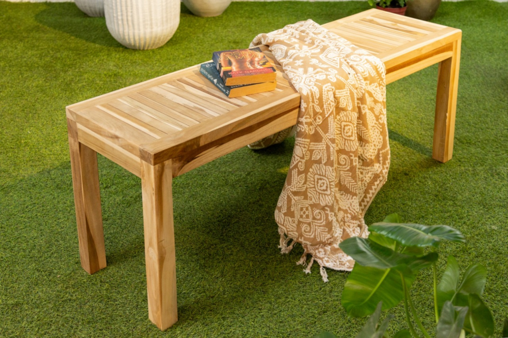 Die Bank BIARO wurde aus Massivholz (Teak, unbehandelt) hergestellt und bietet einen guten Sitzkomfort und eine hochwertige Qualität. Die kompakten Abmessungen machen die Bank zu einer optimalen Ergänzung in Ihrem Zuhause oder Garten.