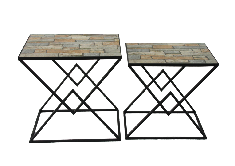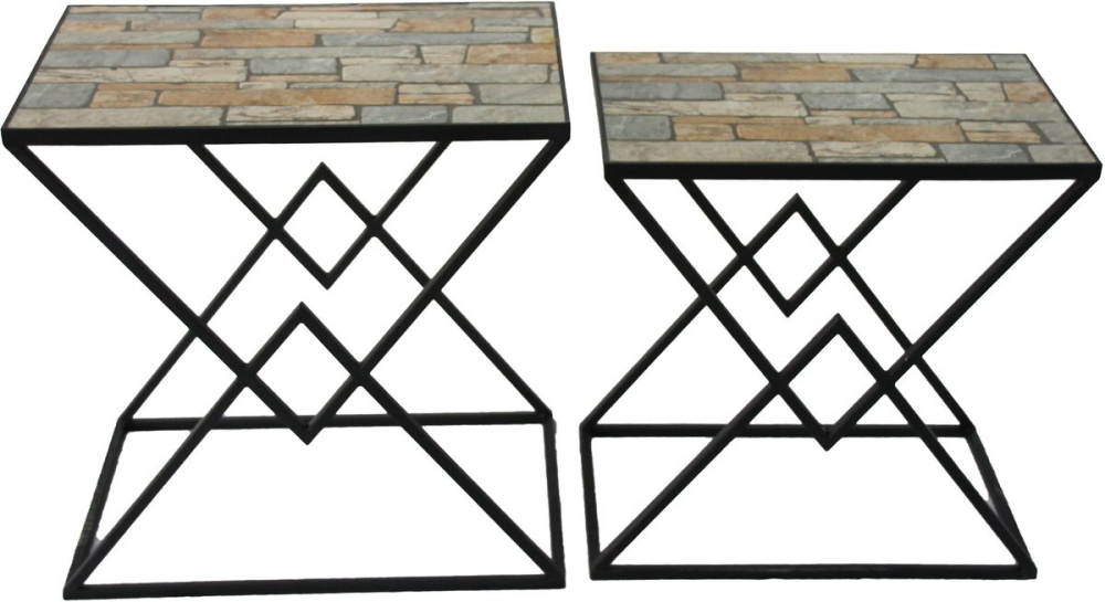 Die Kombination von schwarzem Eisen und der Steinoptik verleiht den Tischen ein elegantes und zeitgemäßes Aussehen, das sich nahtlos in verschiedene Einrichtungsstile einfügt.