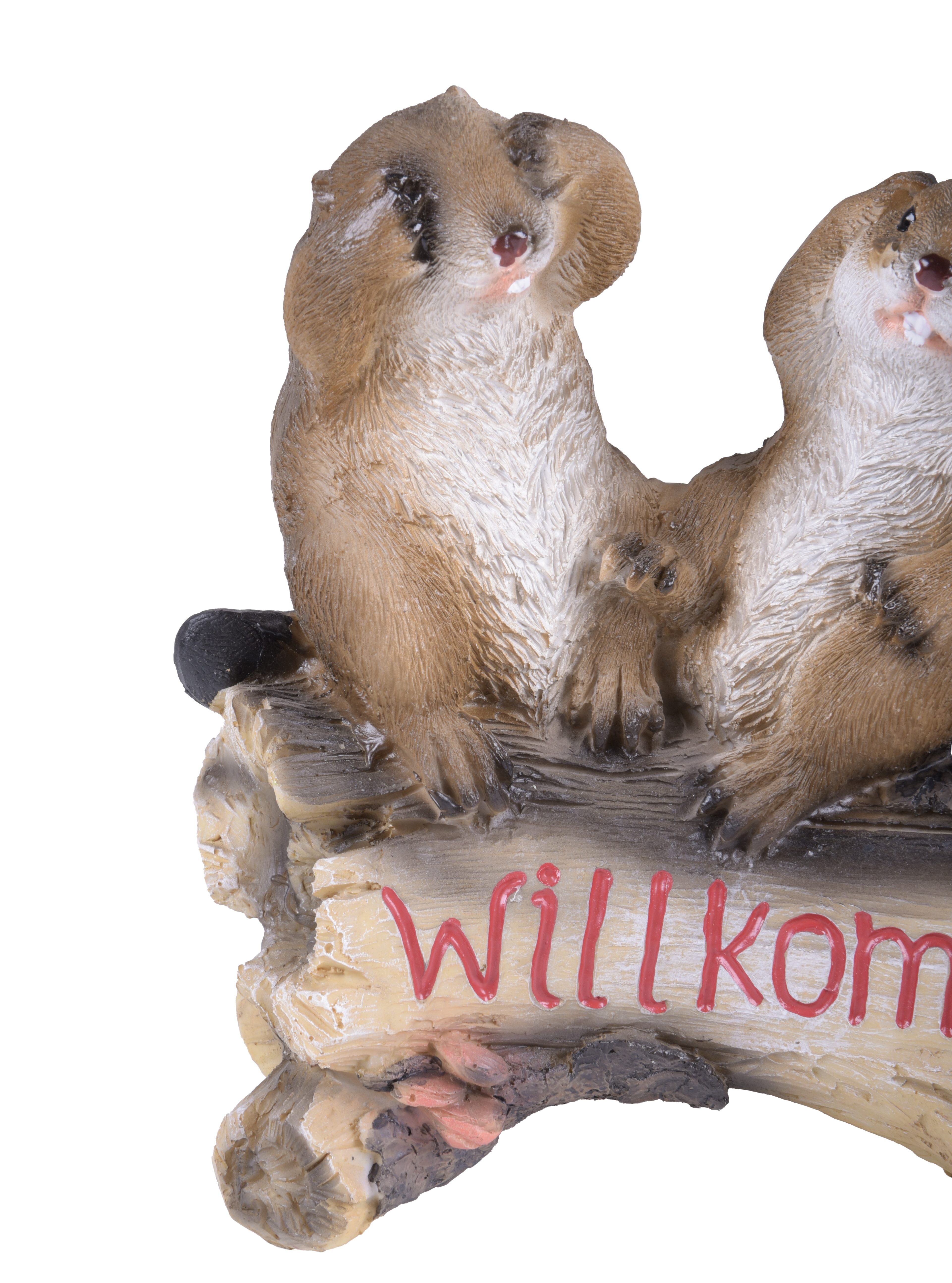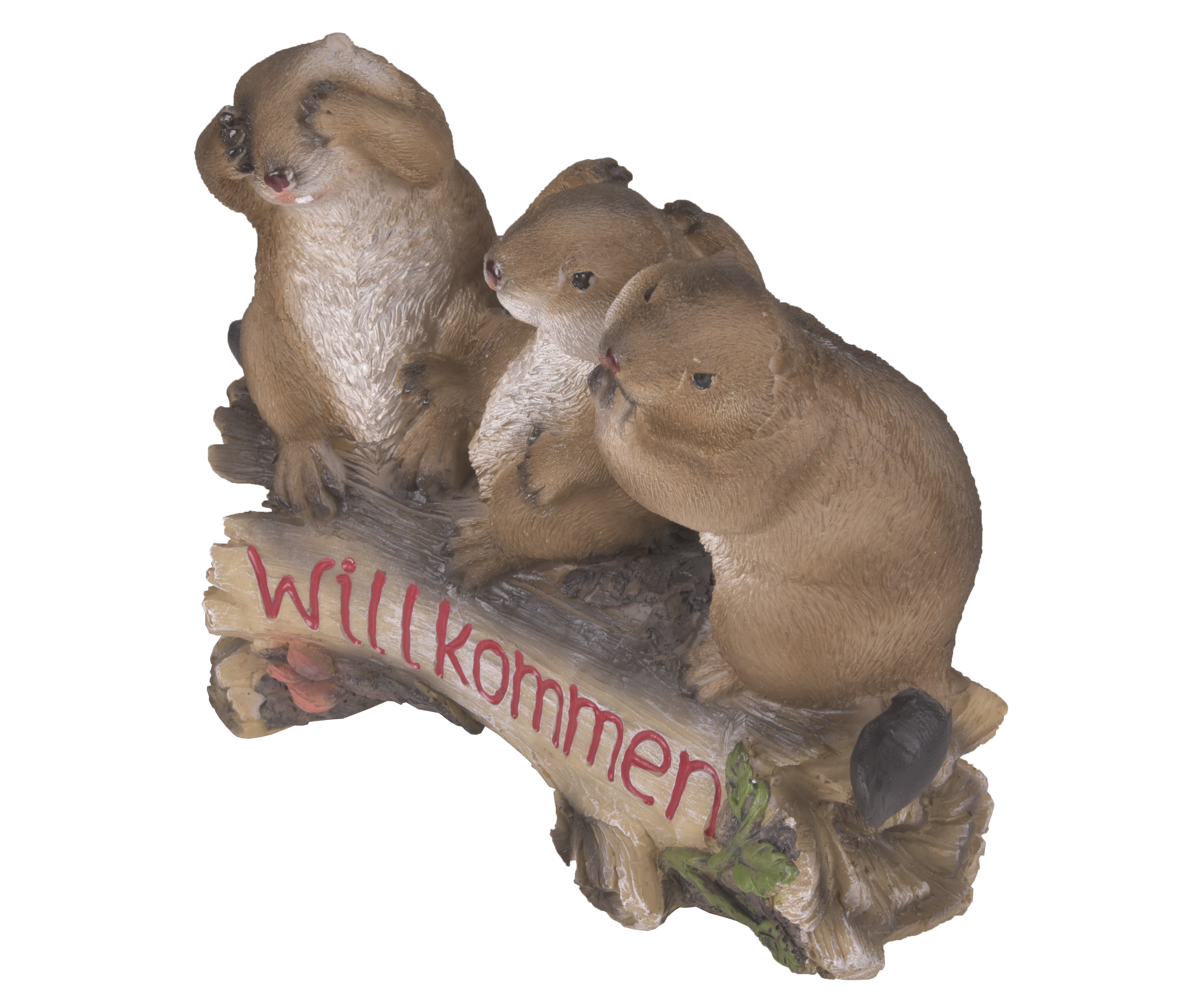 Diese charmante Gartenfigur, die einen Biber auf einem Baumstamm darstellt und die Aufschrift "WILLKOMMEN" trägt, ist eine herzliche und einladende Ergänzung für Ihre Garten- oder Außendekoration. Hergestellt aus langlebigem Polyresin, ist diese Figur wetterfest und robust genug, um das ganze Jahr über im Freien zu stehen.