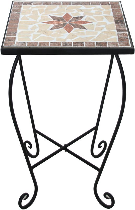 Unser Blumenhocker KOLUMBOS aus robustem Eisen ist eine wunderbare Ergänzung für Ihre Gartendekoration oder Innenräume. Dieser Hocker verfügt über ein attraktives Mosaikdesign auf der Oberfläche, das ihm eine charmante und künstlerische Optik verleiht.