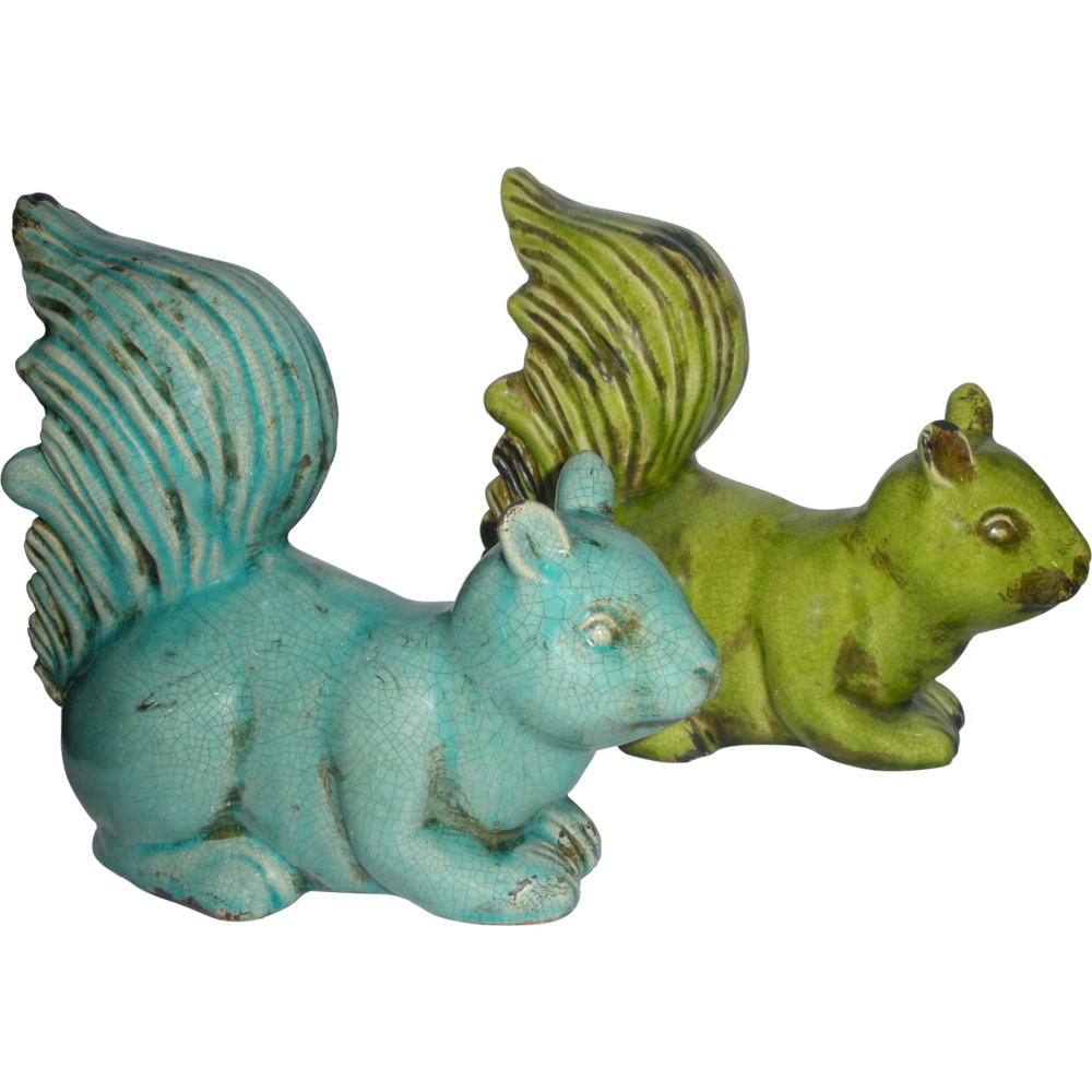 Diese bezaubernden Keramik-Eichhörnchen in den Farben Blau und Grün sind eine entzückende und verspielte Bereicherung für Ihre Dekoration. Jedes Eichhörnchen liegt entspannt und lächelnd, was eine fröhliche und friedliche Atmosphäre schafft.