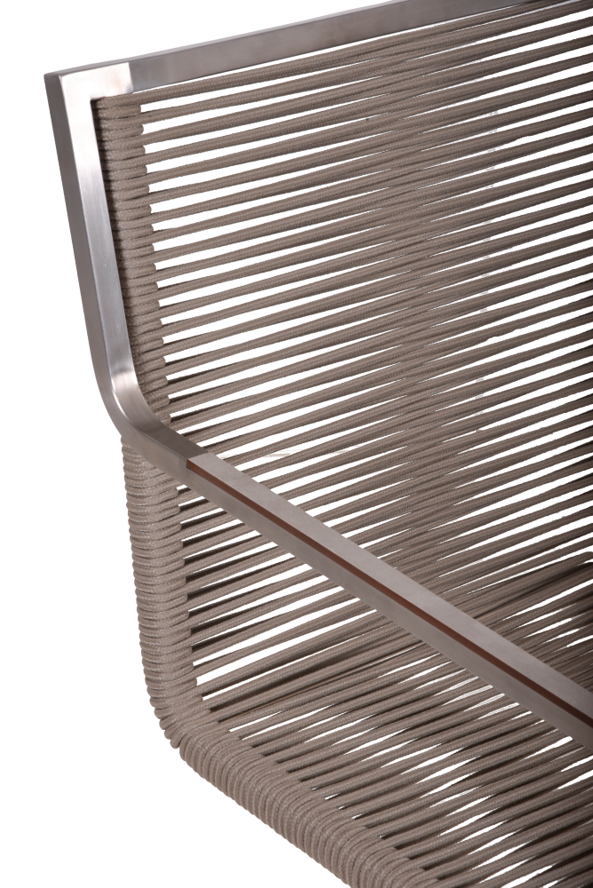 Die Sitz- und Rückenflächen des Stuhls sind mit einer Seilbespannung in den Farben Grau und Taupe bezogen. Diese Seilbespannung ist nicht nur äußerst bequem, sondern auch wetterbeständig und pflegeleicht. Sie verleiht dem Stuhl eine moderne Optik und bietet gleichzeitig Komfort und Unterstützung.