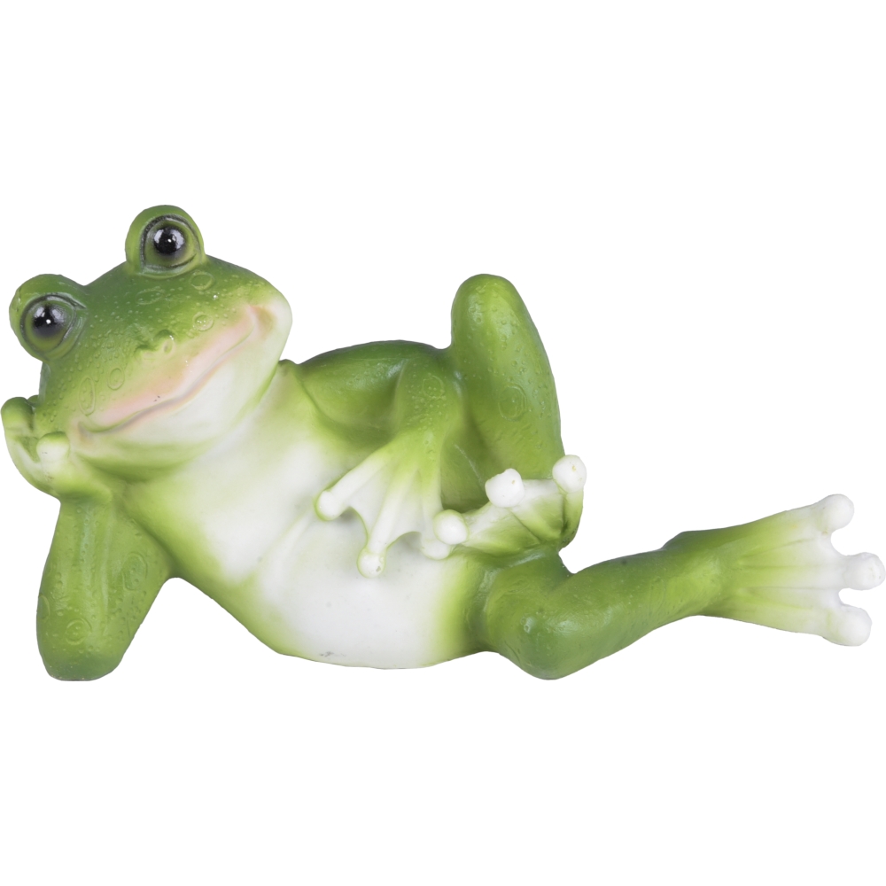 Der Frosch FRANKY ist ein bezauberndes Outdoor-Dekorationsstück, das aus robustem grünem Polyresin gefertigt ist.