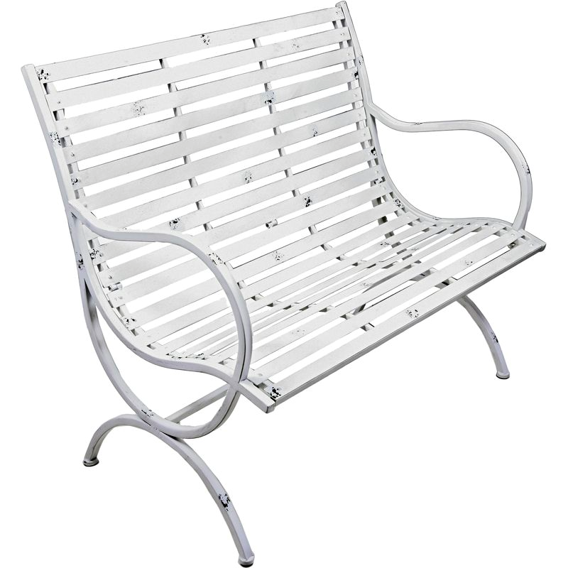 Das antik-weiße Finish der Bank verleiht ihr eine zeitlose Eleganz, die sich perfekt in jede Garten- oder Terrassenlandschaft einfügt.