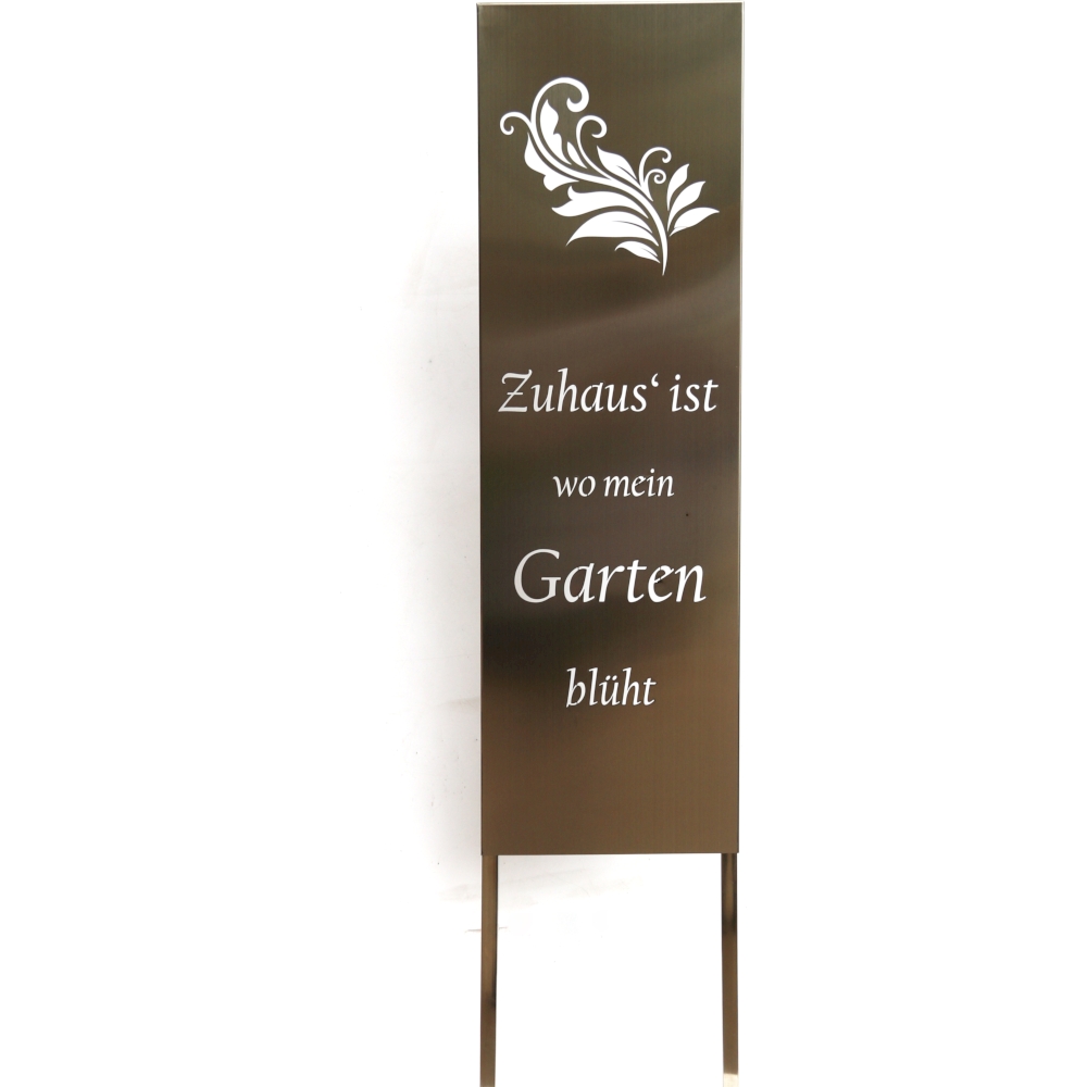 Das Gartenschild mit Farn Motiv ist ein elegantes und modernes Element für jeden Garten oder Außenbereich. Das Schild wurde aus Edelstahl hergestellt und ist zudem verziert mit einem Sinnspruch „Zuhaus` ist wo mein Garten blüht“.                                   Der Artikel wird bereits montiert geliefert.