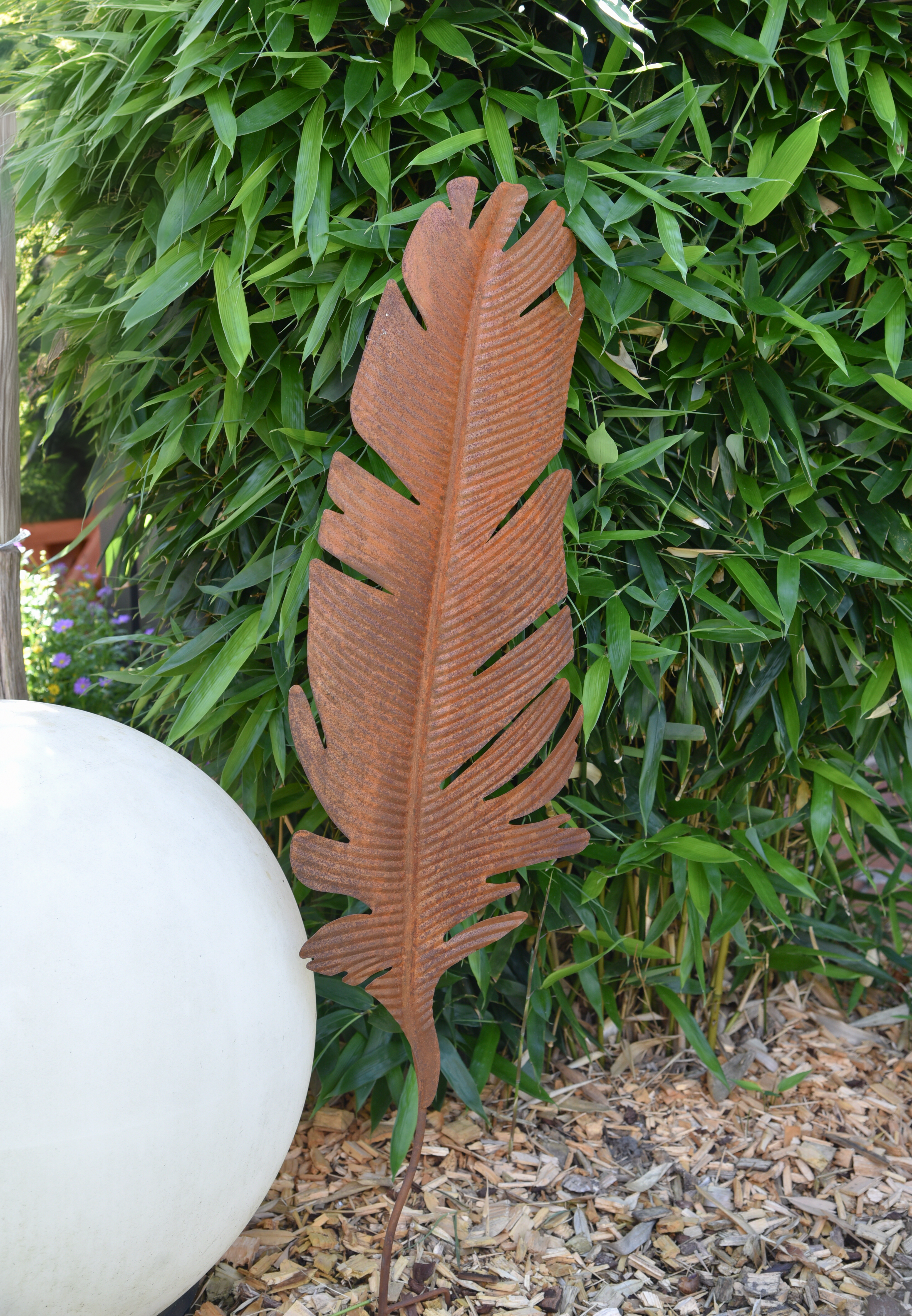 Mit diesem Gartenstecker "FEDER" können Sie Ihren Garten stilvoll dekorieren und ihm einen Hauch von Nostalgie verleihen. Er ist eine ansprechende Ergänzung für Gartenliebhaber, die Wert auf rustikale Ästhetik legen.