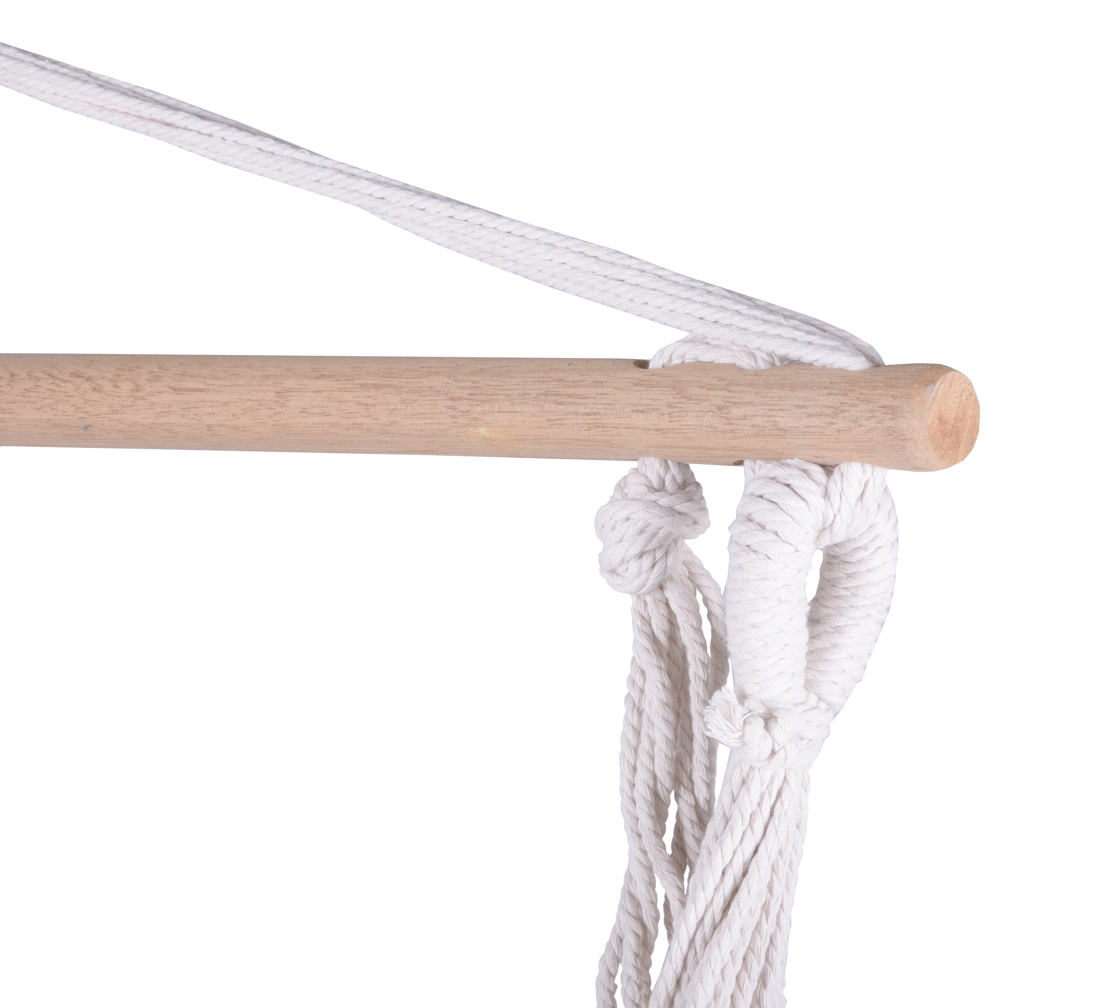 Der TOBAGO Hängesessel verfügt über eine stabile Holzstange aus Hartholz, die die beiden Seiten des Sessels miteinander verbindet. Diese sorgt dafür, dass der Sessel stabil und sicher aufgehängt werden kann, so dass Sie sich beruhigt zurücklehnen und genießen können.