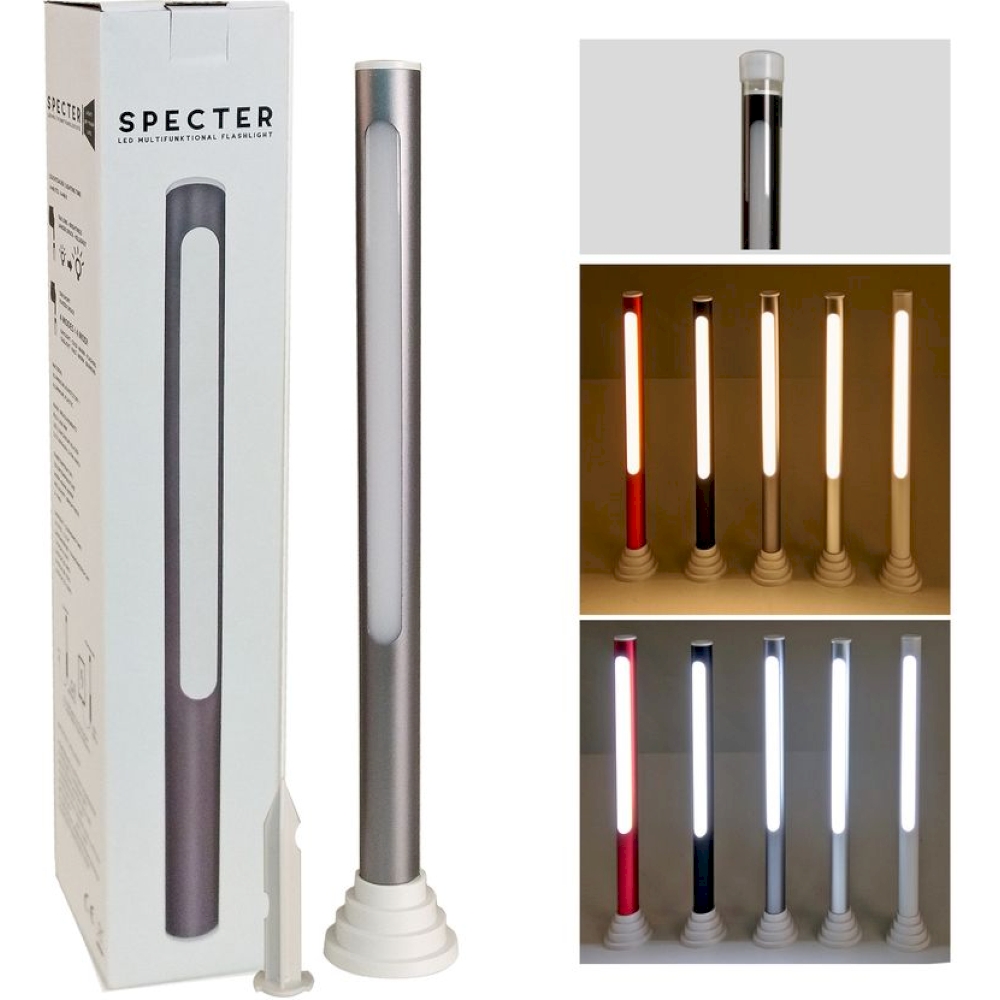 Unsere LED Multifunktions-Stableuchte SPECTER ist ein vielseitiges Beleuchtungswerkzeug, das sich ideal für den Einsatz im Innen- und Außenbereich eignet. Diese Leuchte besteht aus strapazierfähigem anthrazitfarbenem Aluminium und weißem Kunststoff und bietet eine Reihe von praktischen Funktionen.