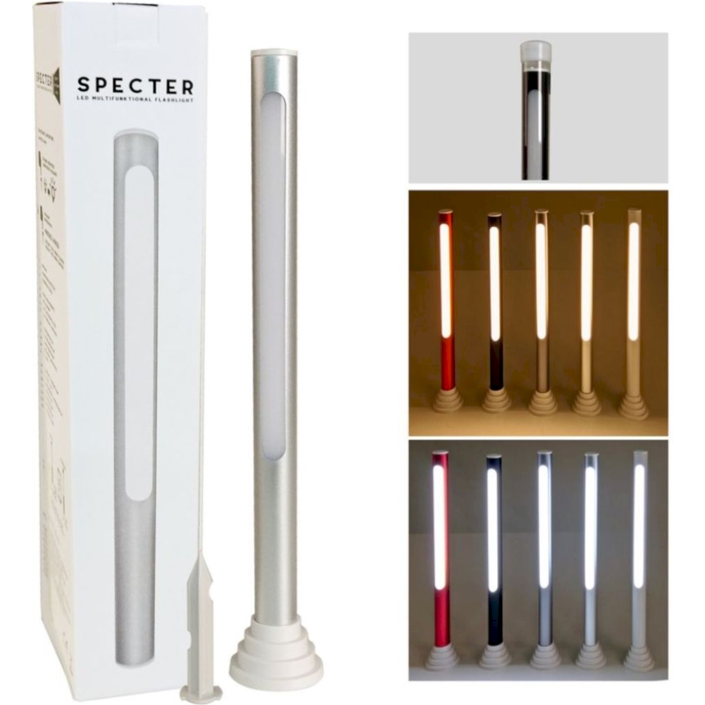 Unsere LED Multifunktions-Stableuchte SPECTER ist ein äußerst vielseitiges Beleuchtungswerkzeug, das sich ideal für den Einsatz im Freien eignet. Diese Leuchte besteht aus hochwertigem silbergrauem Aluminium und weißem Kunststoff und bietet eine Reihe von praktischen Funktionen.