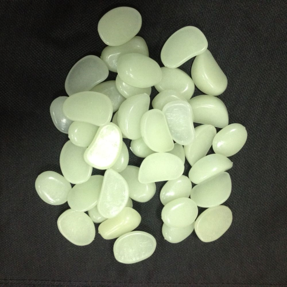 Die Kieselsteine laden sich tagsüber durch Sonnenlicht auf und strahlen dann in der Dunkelheit sanftes grünes Licht aus.
