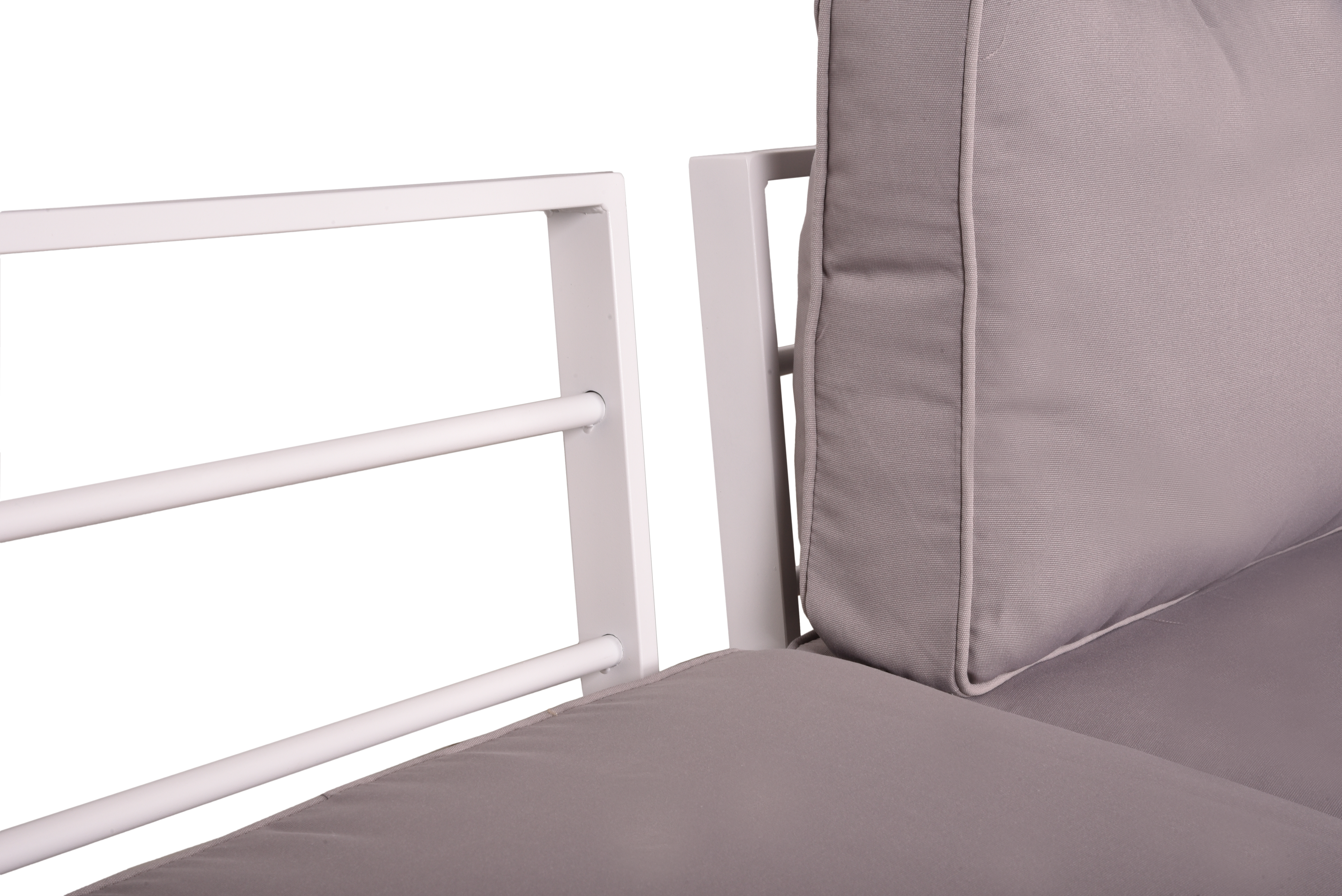 Die glatte, weiße Oberfläche des Aluminiumrahmens und das helle Eichen-Optik-Nonwood bilden eine perfekte Kombination, die dem Lounge-Set VALENTINA eine moderne und elegante Ästhetik verleihen. Die Kissen und Sitzkissen aus hochwertigem Polyester bieten ein weiches und bequemes Sitz- und Liegegefühl, das Sie in Ihrem Garten oder auf Ihrer Terrasse genießen können.