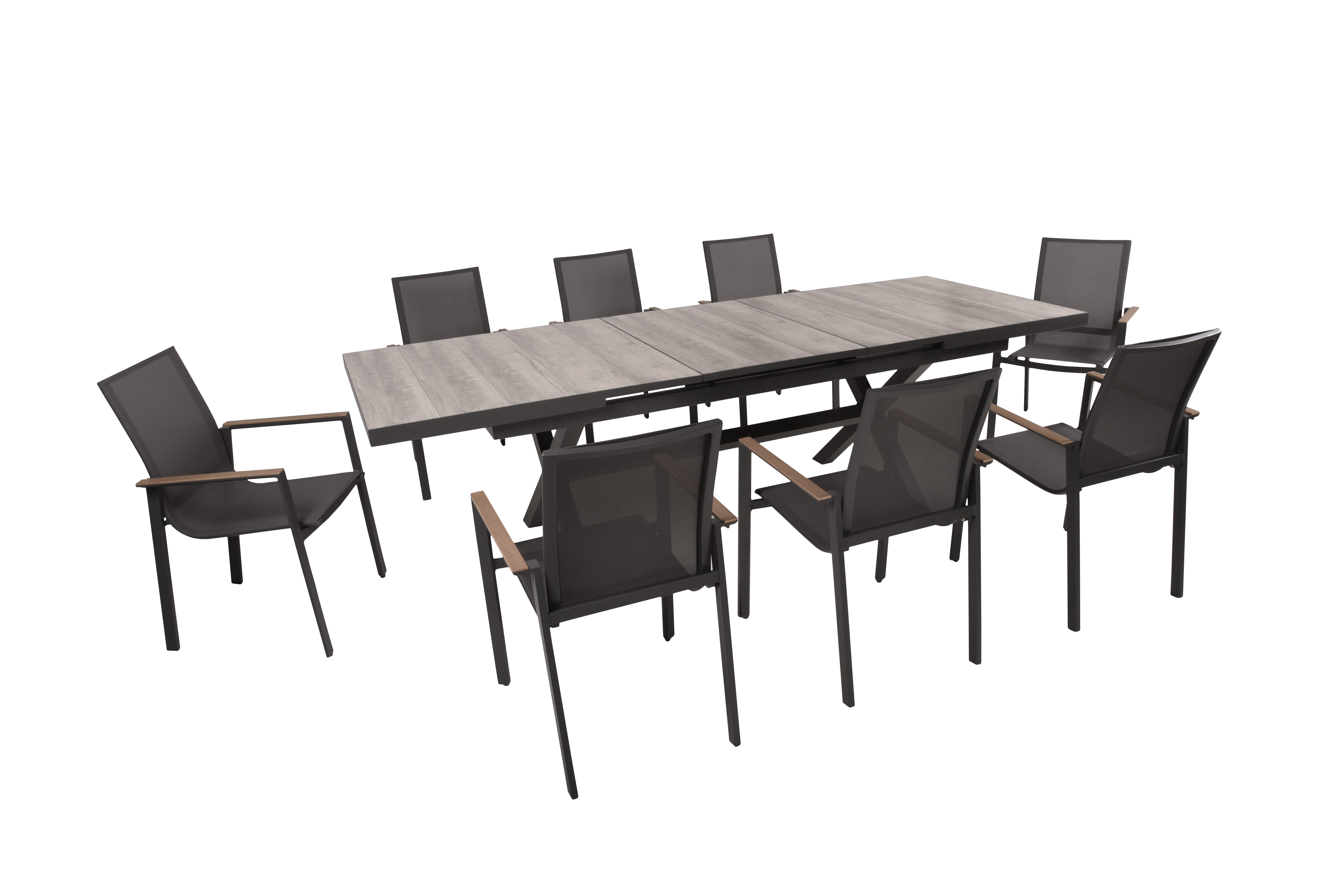 Das Lounge-Set VALENTINA ist eine luxuriöse und stilvolle Option, um Ihren Außenbereich zu verschönern und gleichzeitig höchsten Komfort zu bieten. Das Set besteht aus zwei 2-Sitzer Sofas, einem Eckstück und einem Tisch, die alle aus hochwertigem, weißem, pulverbeschichtetem Aluminium und Nonwood in Helleichenoptik gefertigt sind.