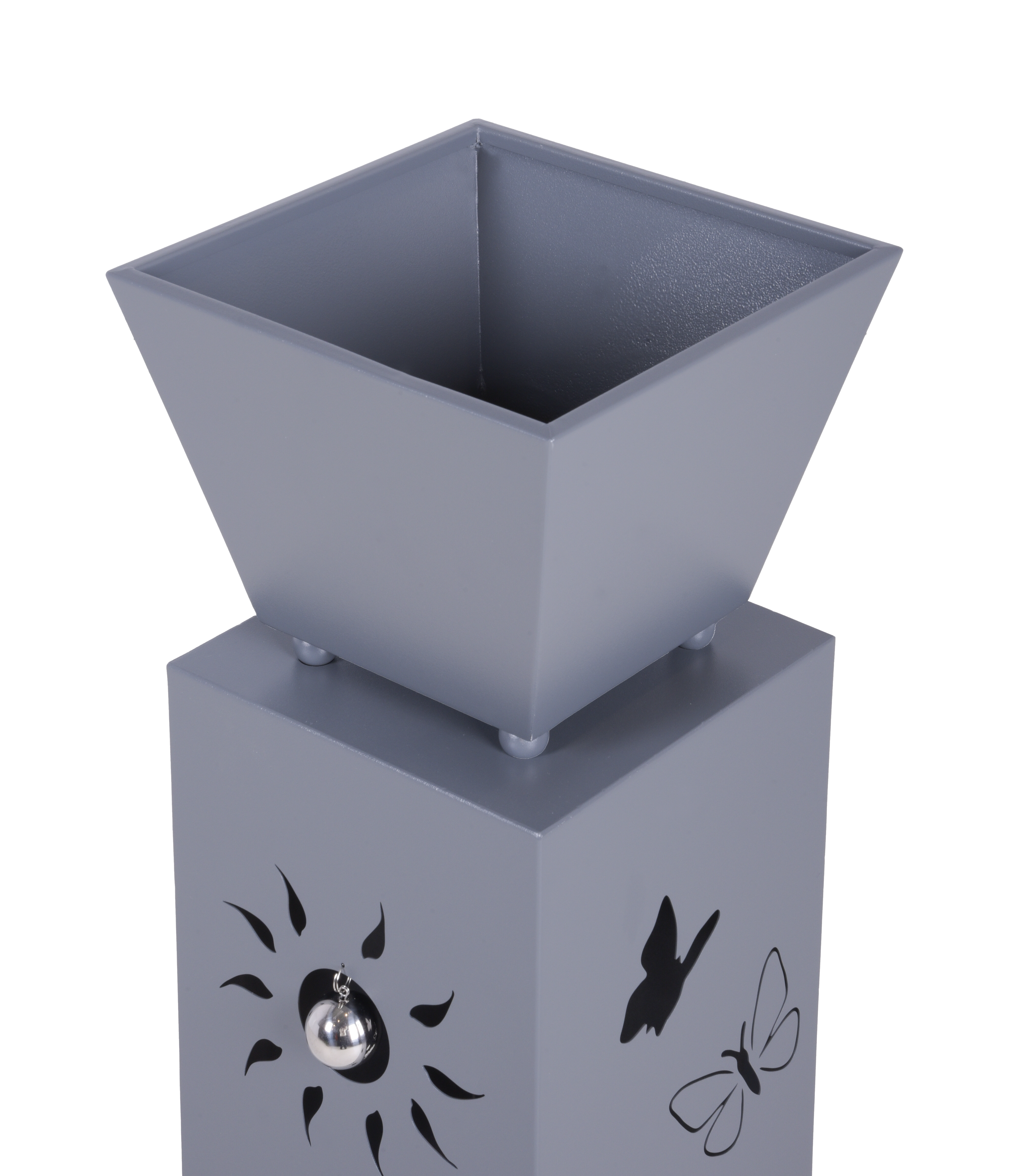 Stahl, pulverbeschichtet, grau, mit einer Kugel zur Zierde