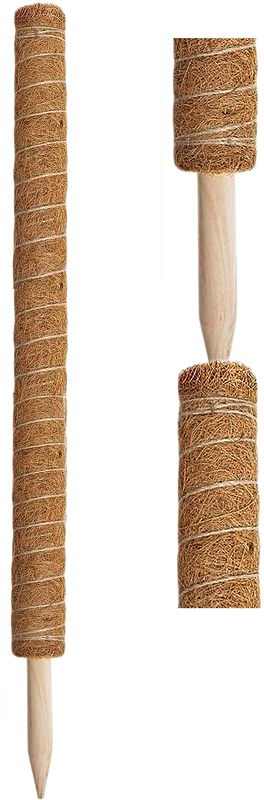 Der Kokosnussschicht verleiht dem Stab eine rustikale Optik und dient gleichzeitig als natürliche Oberfläche, an der Ihre Rankpflanzen leichter Halt finden können. Die braune Farbe der Kokosnuss harmoniert gut mit dem hellbraunen Holz und fügt sich nahtlos in Ihren Garten oder Ihre Blumenbeete ein.