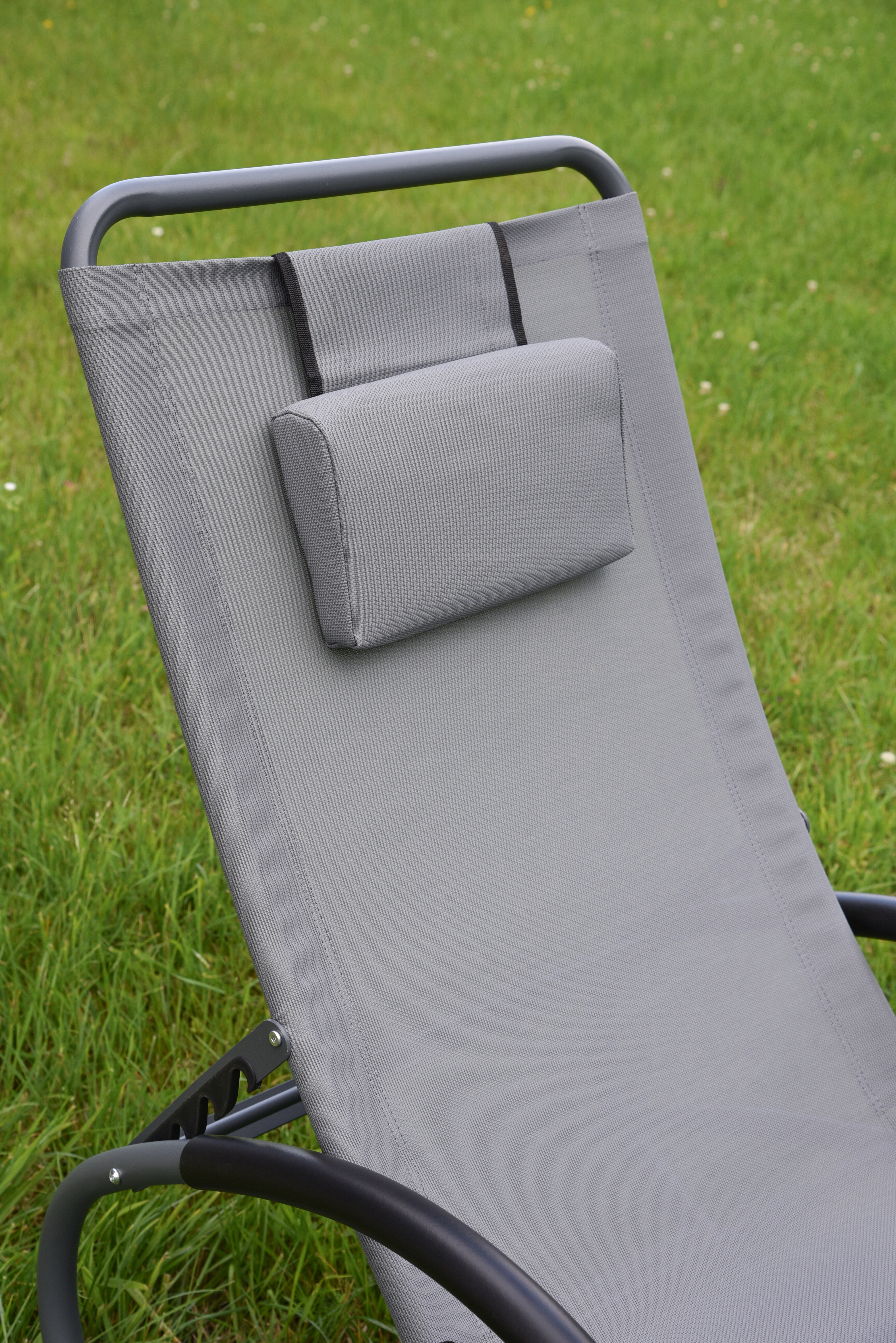 Hergestellt aus robustem anthrazitfarbenem Stahl und strapazierfähigem grauem Kunststoffgewebe, bietet sie eine langlebige Konstruktion, die auch den Elementen standhält.