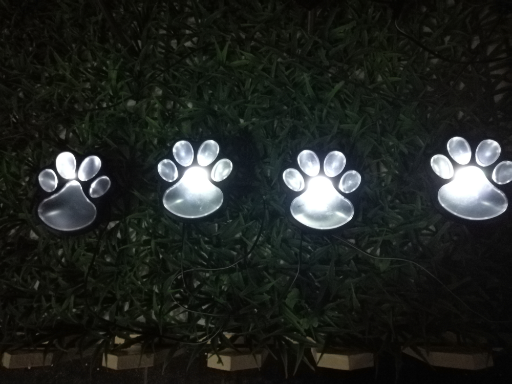 Die Lichterkette enthält insgesamt 4 Pfotenmotive, und jedes Motiv ist mit einer kaltweißen LED ausgestattet, die ein helles und auffälliges Licht erzeugt.