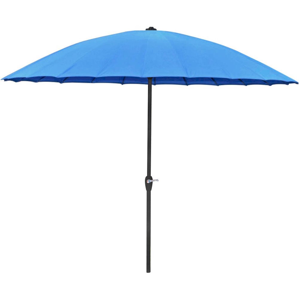 Das schlichte Design des Sonnenschirms besticht durch seine elegante Erscheinung und die zeitlose Farbe Blau. Mit seinen 24 Streben garantiert er eine stabile Konstruktion und eine großzügige Spannweite, um Ihnen und Ihren Gästen ausreichend Schatten zu spenden. Egal ob Sie sich in Ihrem Garten entspannen, eine Grillparty veranstalten oder ein Essen im Freien genießen - dieser Sonnenschirm wird Ihnen stets zuverlässig Schutz bieten.