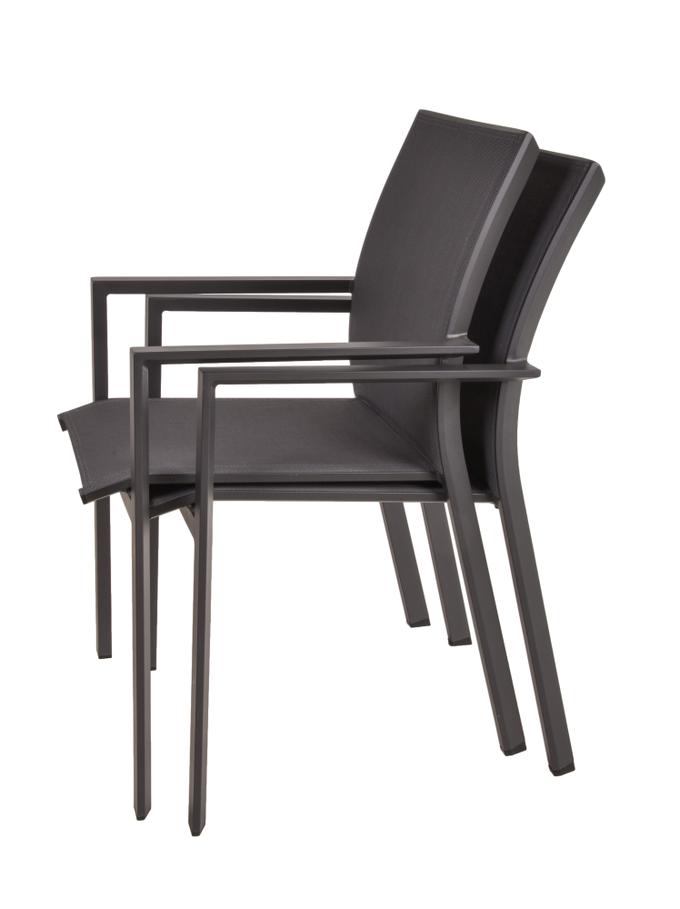Der Stapelstuhl ELENA kombiniert modernes Design mit hervorragendem Komfort und ist die perfekte Wahl für Ihren Innen- und Außenbereich. Hergestellt aus hochwertigem Aluminium und strapazierfähigem Kunststoffgewebe in einem zeitgemäßen Dunkelgrün, verleiht dieser Stuhl Ihrem Wohn- oder Außenbereich eine stilvolle Note.