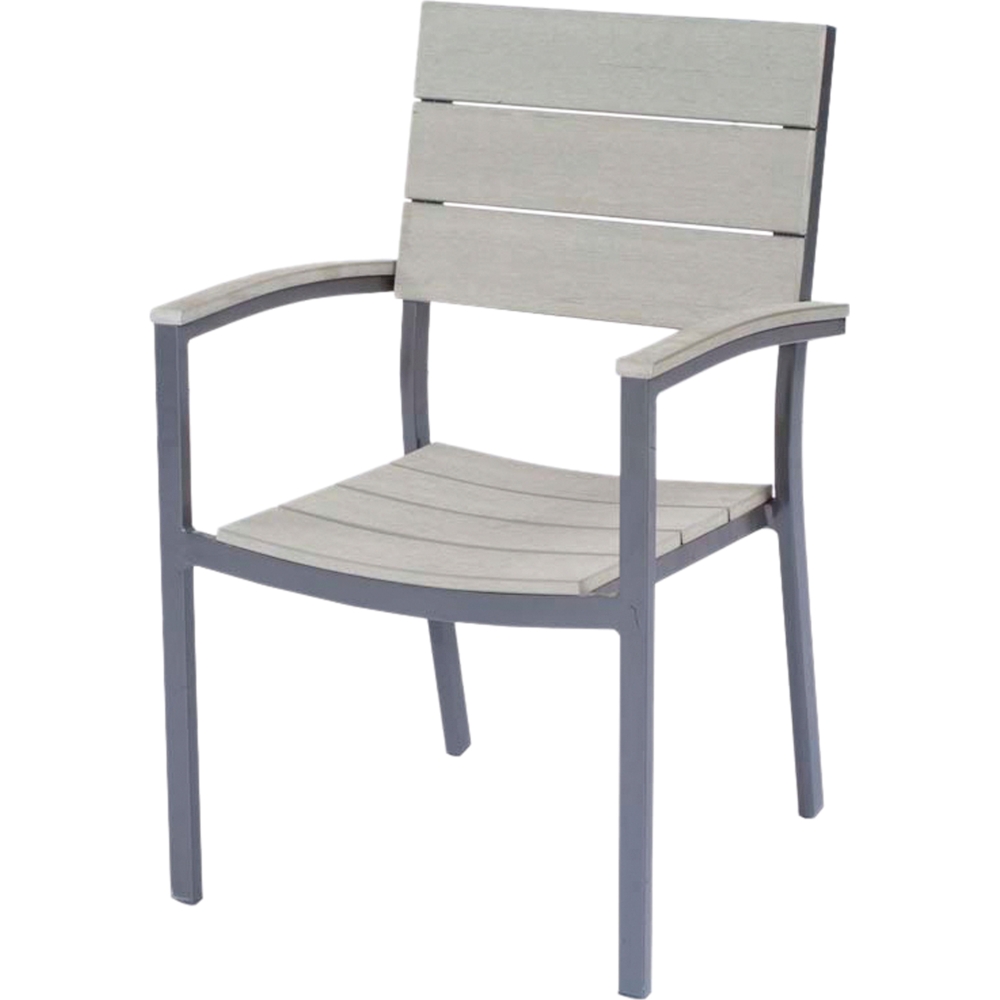 Das Non-Wood-Material, aus dem der Stuhl gefertigt ist, ist eine moderne Alternative zu Holz und überzeugt mit seiner Haltbarkeit und Widerstandsfähigkeit gegenüber Witterungseinflüssen. Es ist pflegeleicht und unempfindlich gegenüber Feuchtigkeit, UV-Strahlen und Verfärbungen. Das Aluminiumgestell sorgt für Stabilität und ist leicht und dennoch robust.