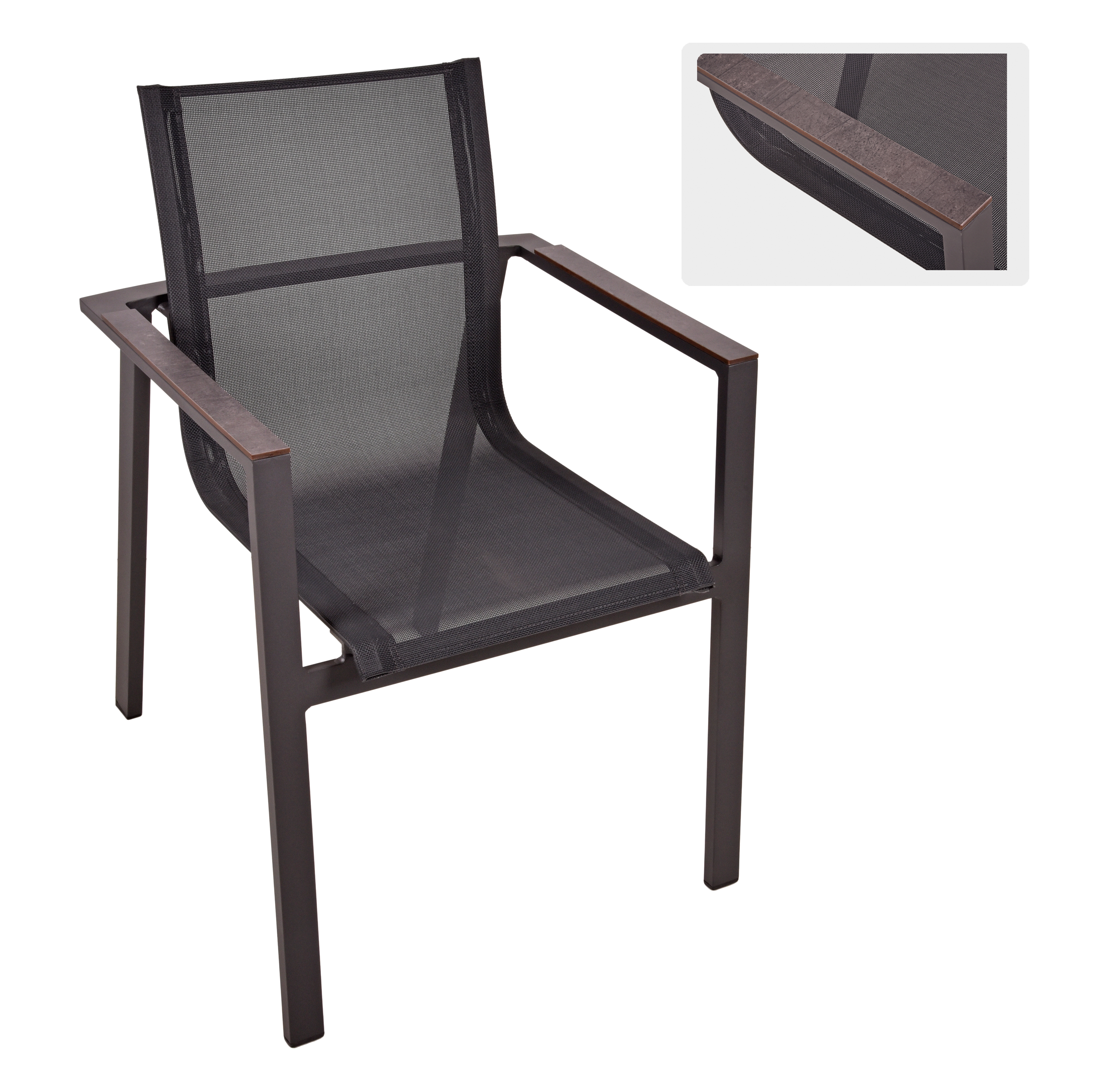 Der SOPHIA Stapelstuhl kombiniert Funktionalität und Ästhetik. Der Rahmen aus pulverbeschichtetem Aluminium verleiht dem Stuhl Stabilität und Robustheit, während das Kunststoffgewebe eine angenehme Sitzfläche bietet. Das Gewebe ist strapazierfähig, wetterfest und leicht zu reinigen, was den Stuhl ideal für den Einsatz im Freien macht.