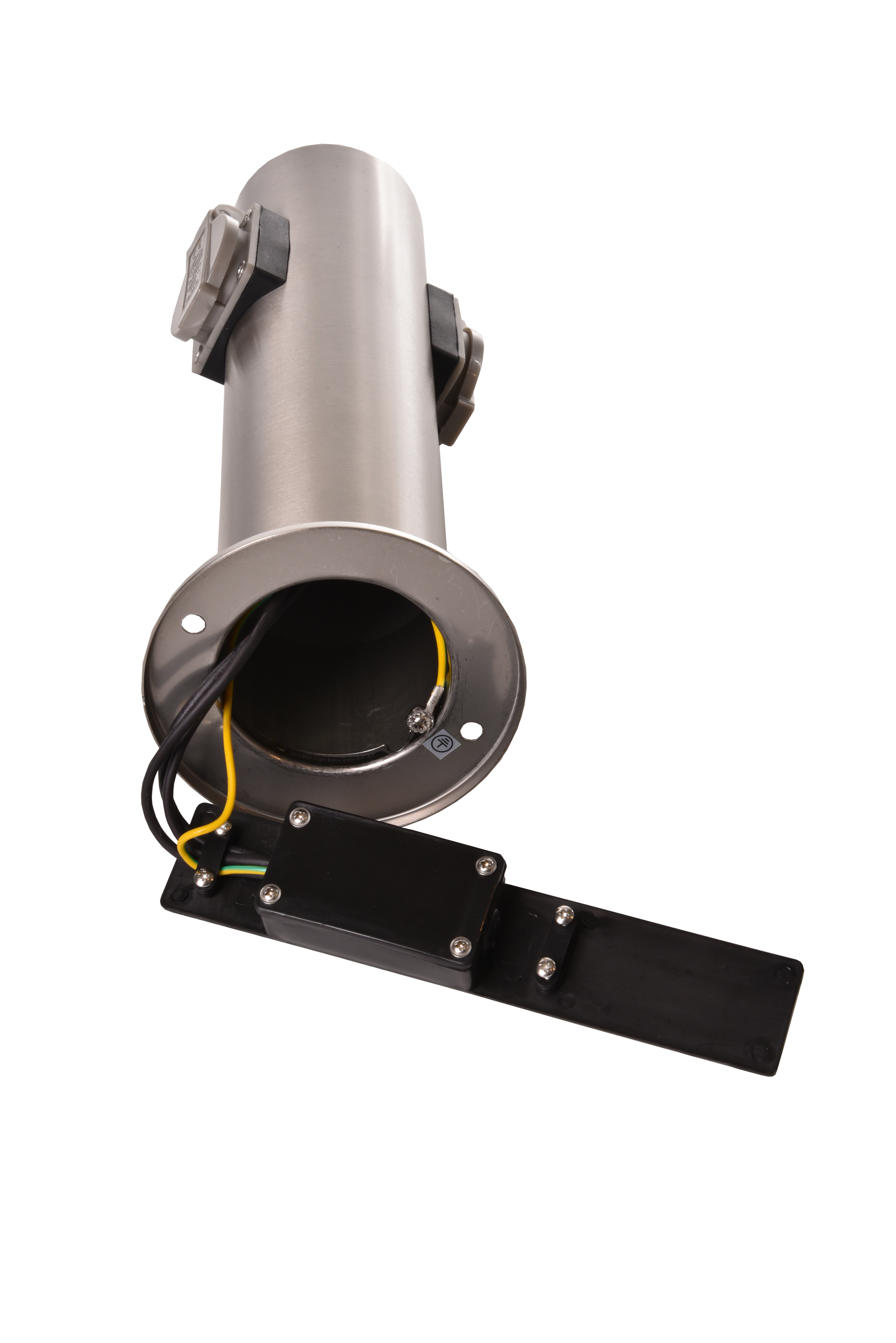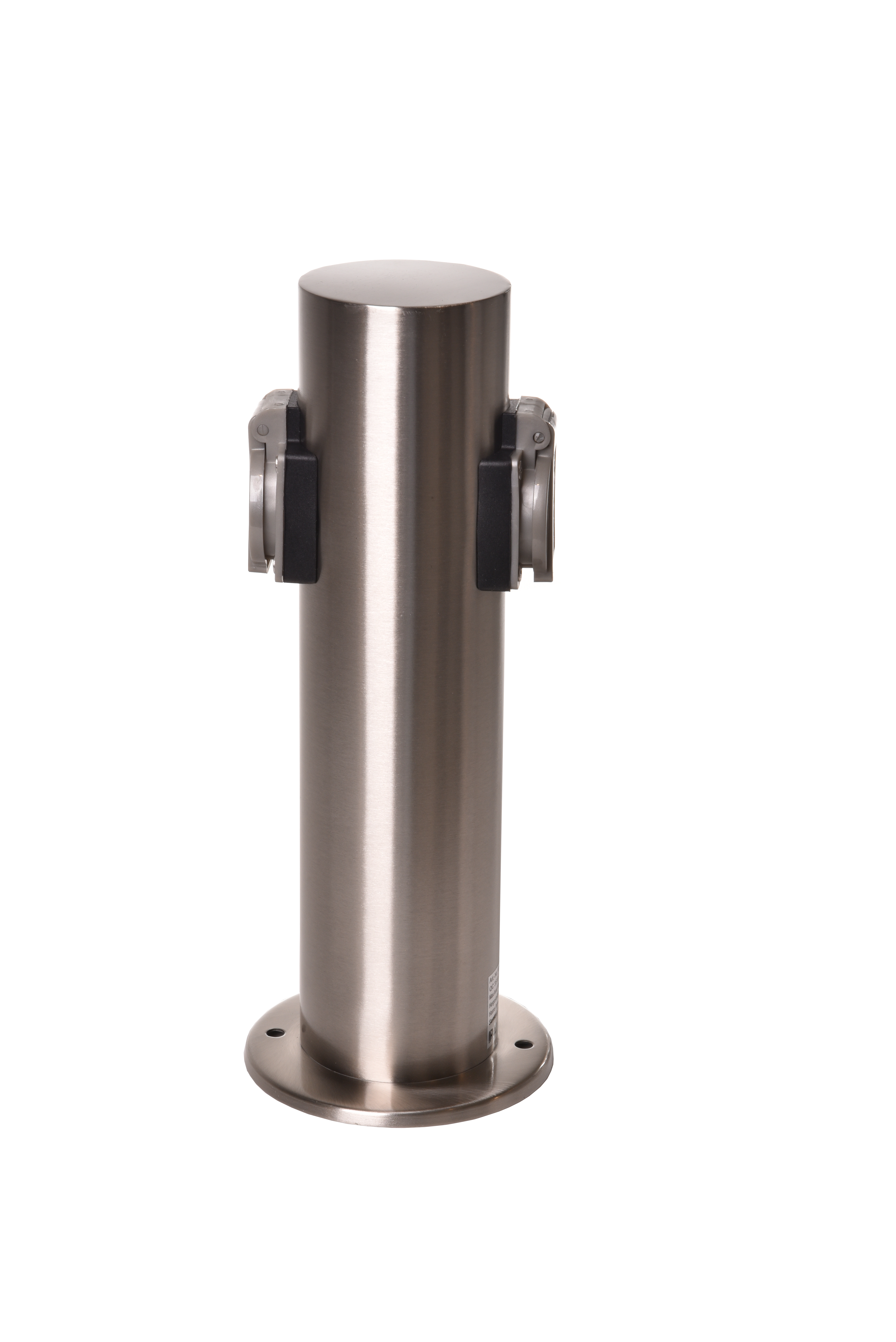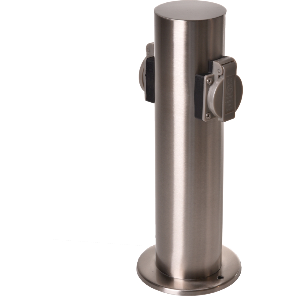 Infotext 1: runder Edelstahlkörper, inkl. 2 Steckdosen