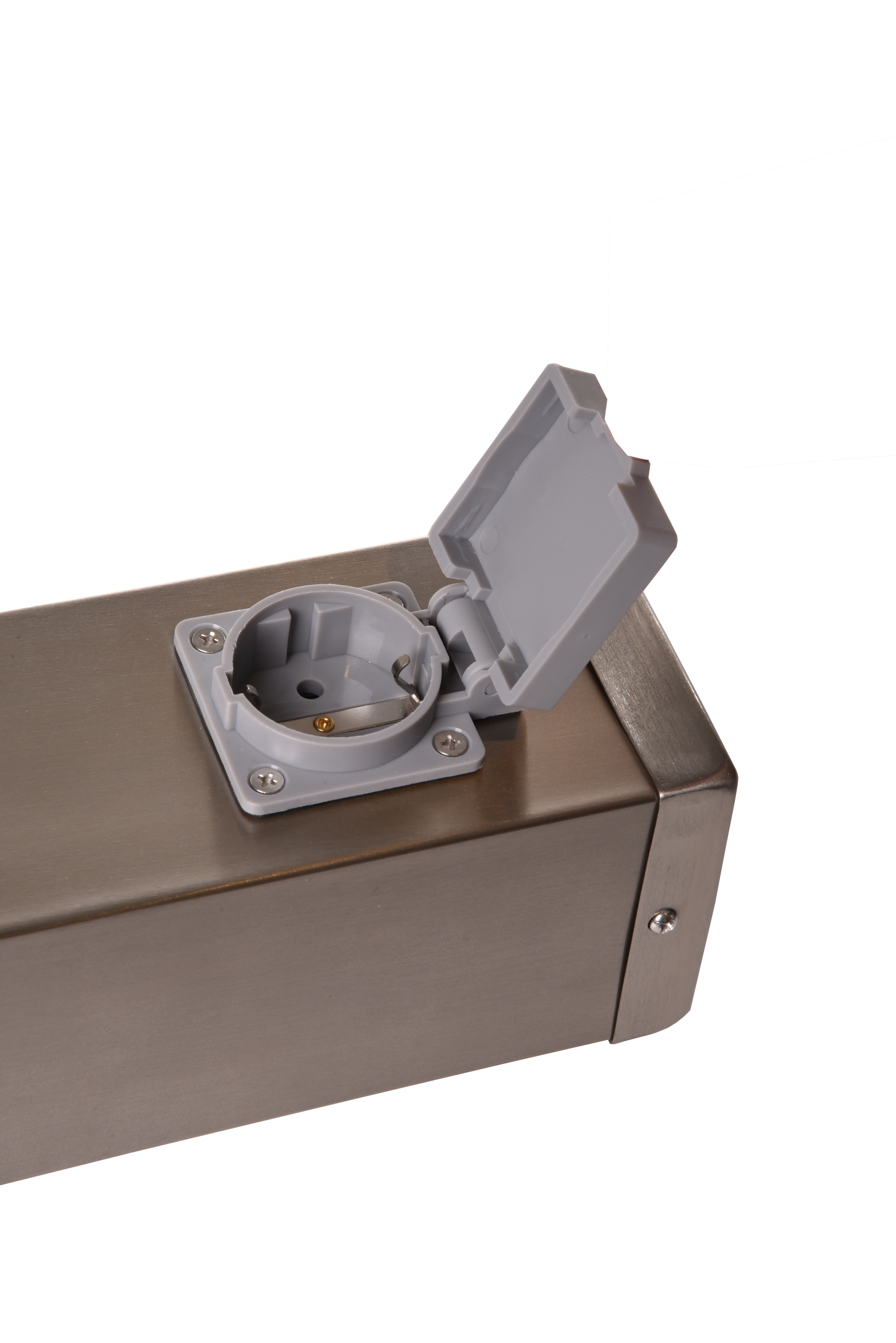 Die Steckdosensäule mit 2 Steckdosen in silbernem Edelstahlgehäuse ist eine praktische Lösung für den Außenbereich. Mit ihrer modernen Optik und robusten Konstruktion eignet sie sich hervorragend für den Einsatz im Garten, auf der Terrasse oder an anderen Orten im Freien.