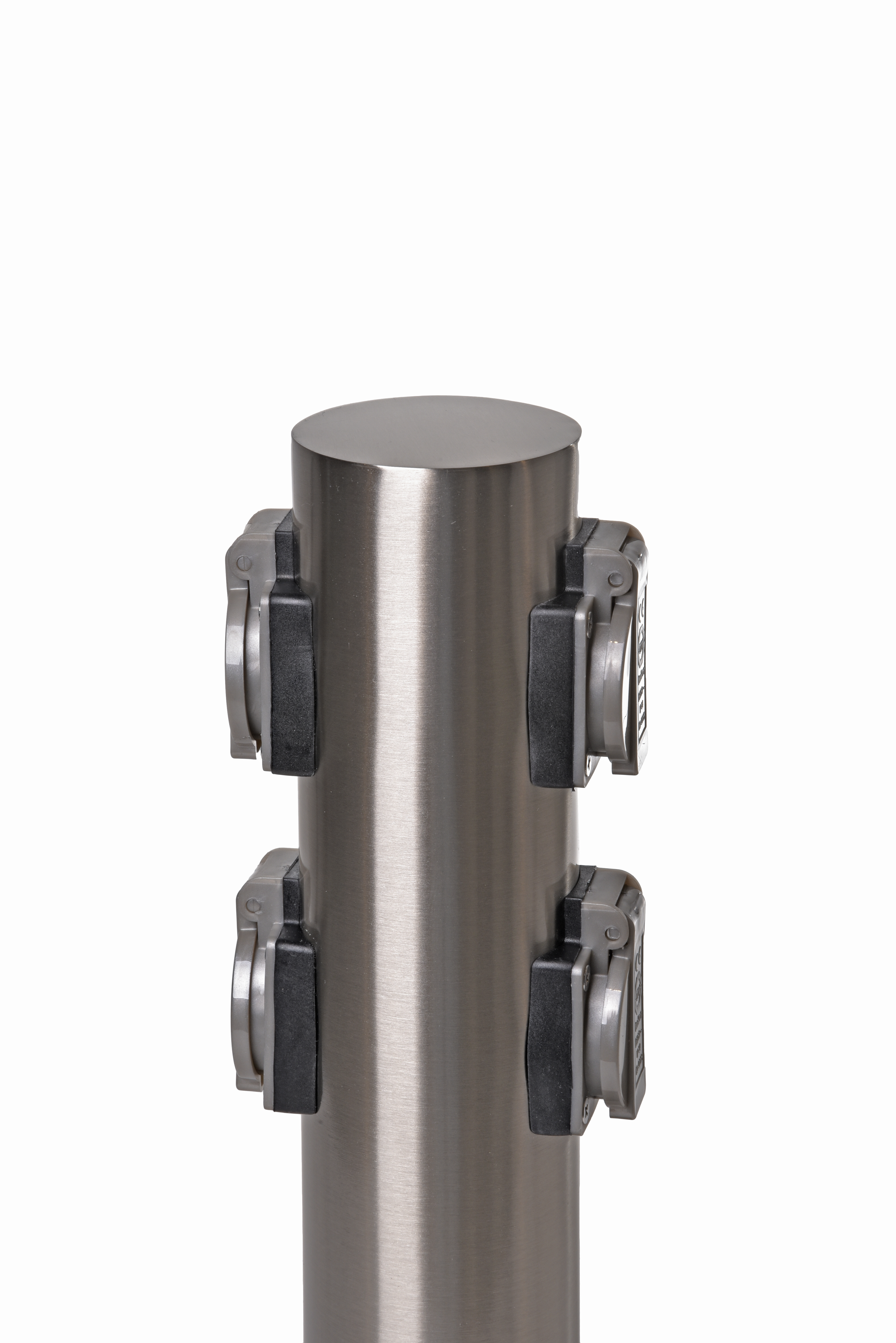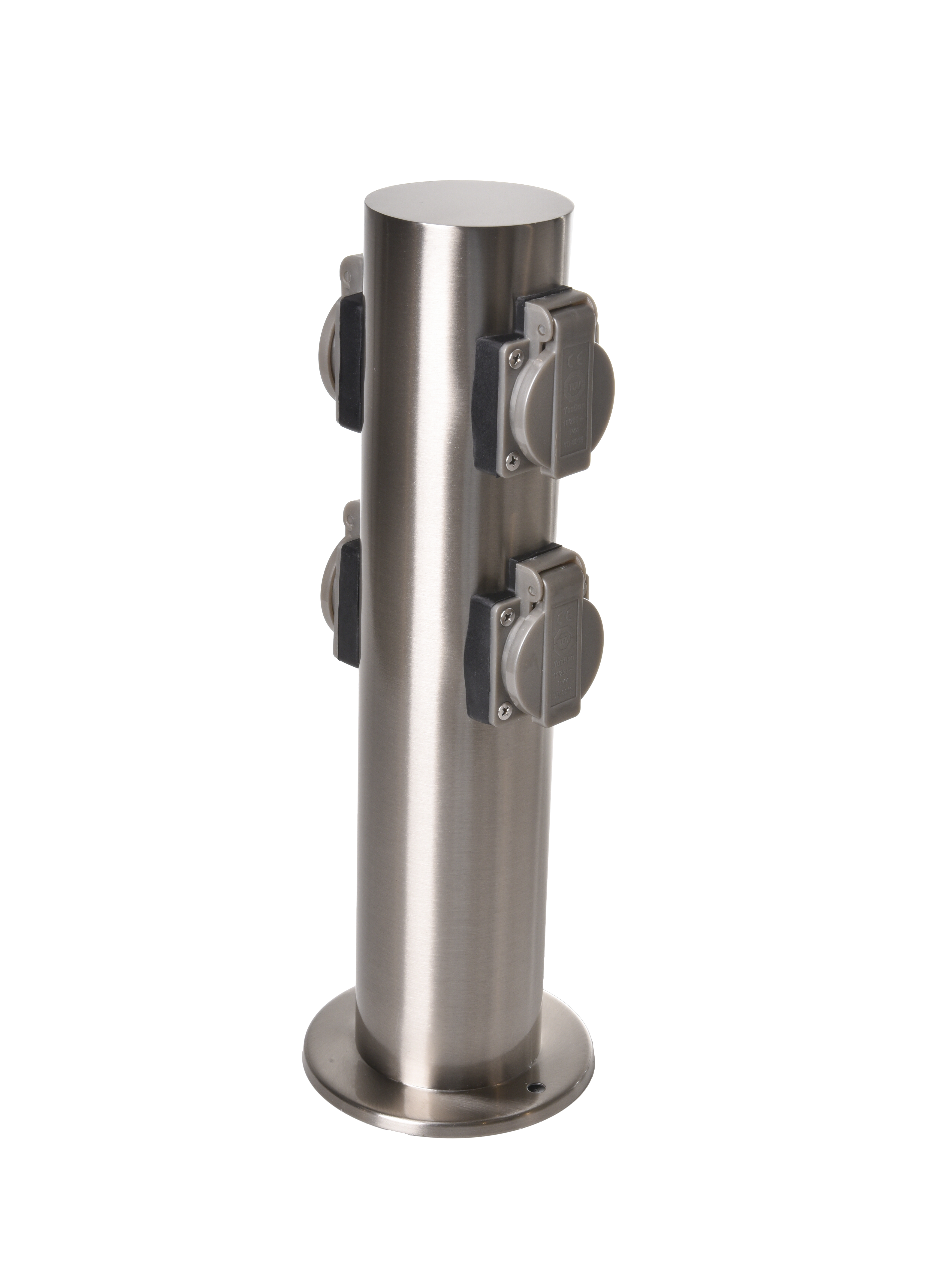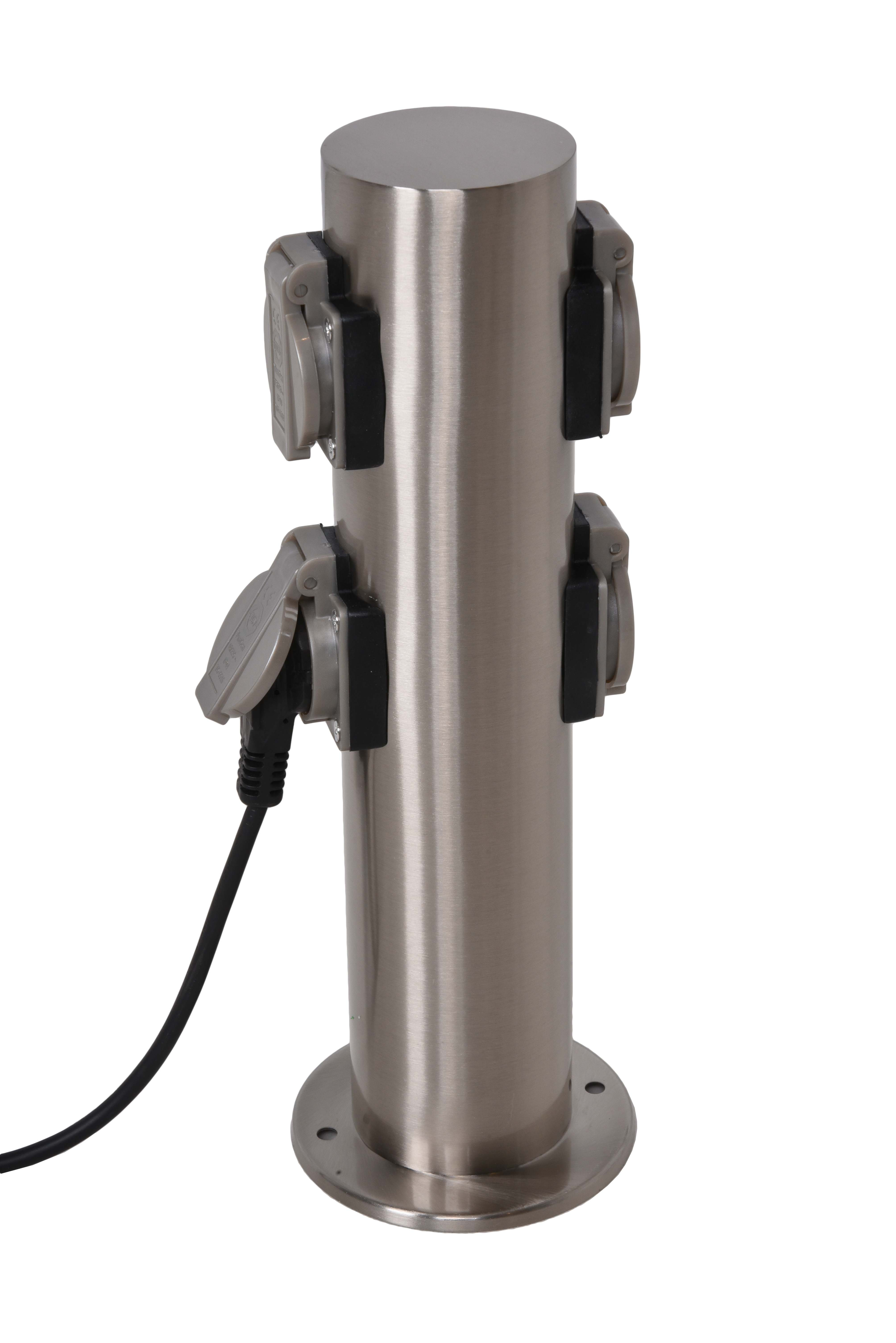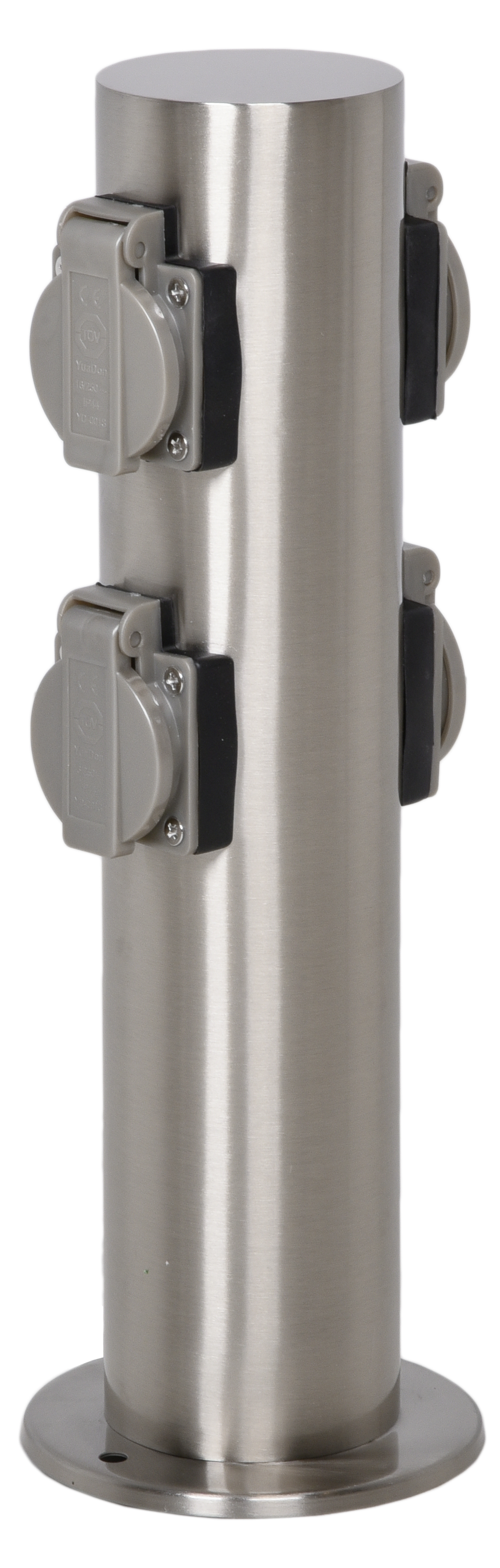Infotext 1: runder Edelstahlkörper, inkl. 2 Steckdosen