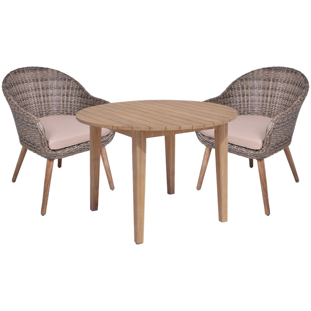 Der PUEBLO Stuhl ist mit einer taupefarbenen Sitzauflage aus 100% Polyester ausgestattet, die nicht nur bequem ist, sondern auch eine stilvolle Note bietet. Die Kombination aus Materialien sorgt für Langlebigkeit und Wetterbeständigkeit, während das zeitgemäße Design des Stuhls Ihrem Outdoor-Bereich Eleganz verleiht.
