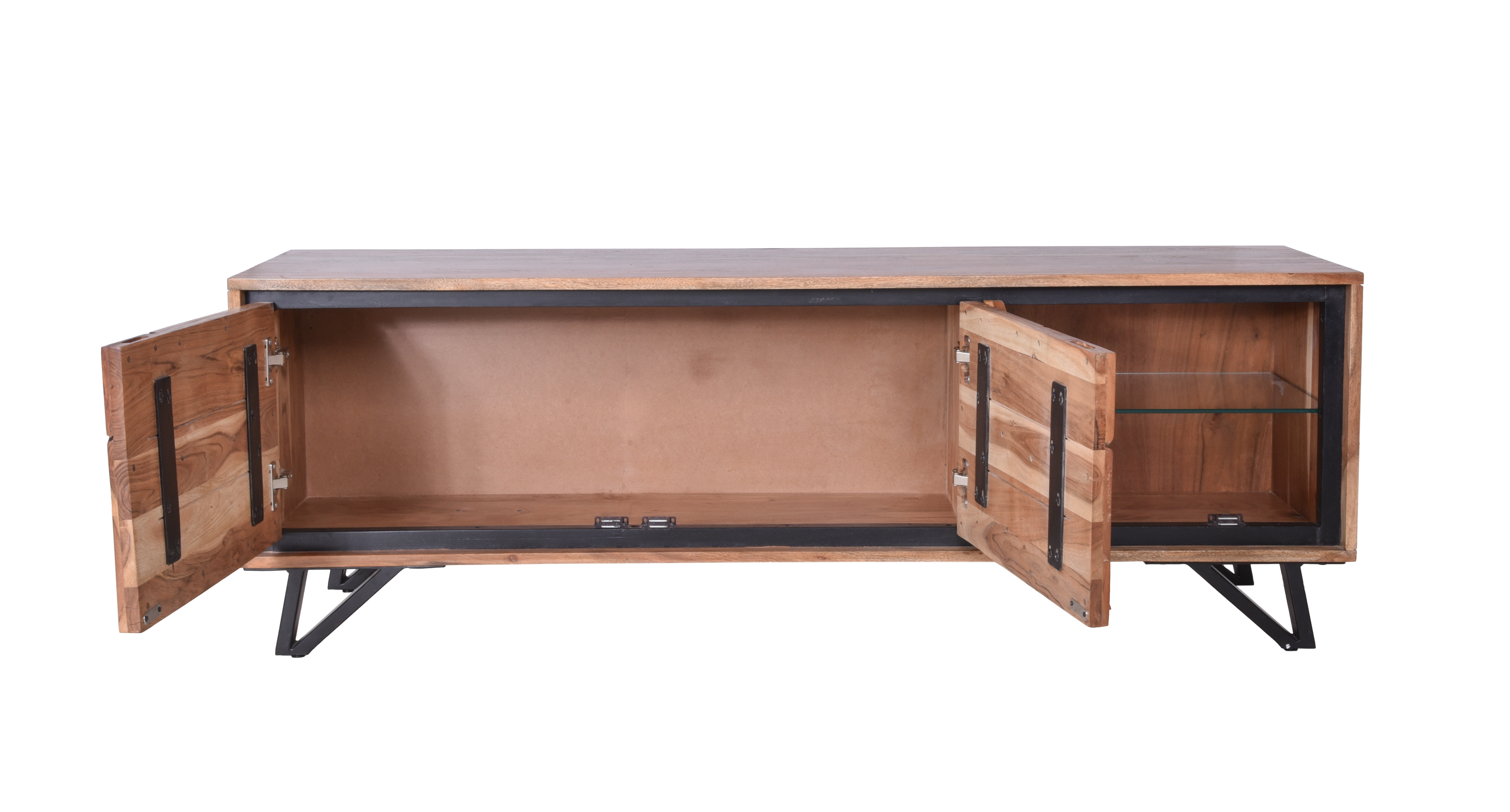 Der TV-Schrank AMBALA ist ein hochwertiges Möbelstück aus Akazienholz, das einen Hauch von Eleganz in Ihr Wohnzimmer bringt.