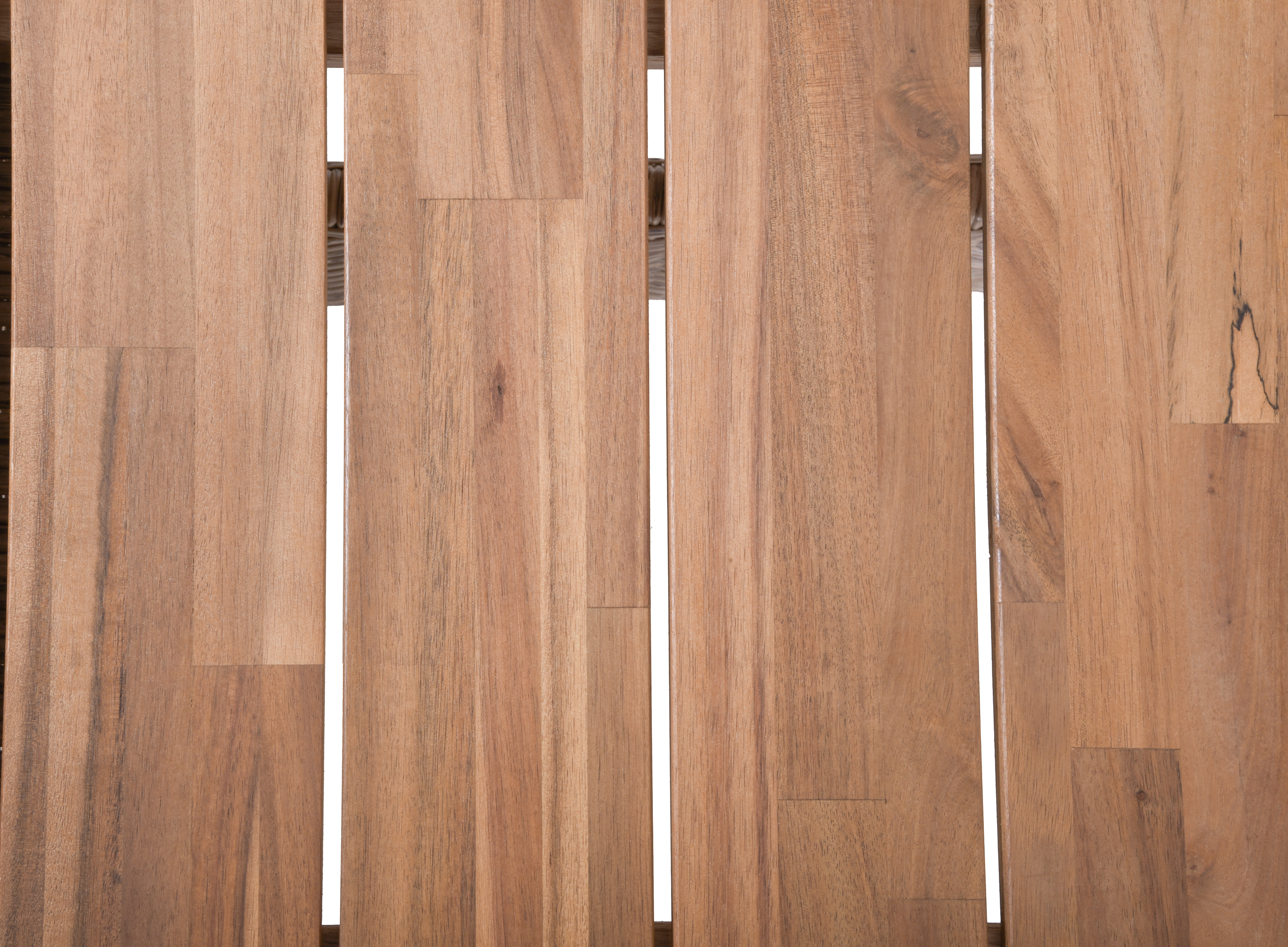Die Tischplatte aus Akazin sorgt für Stabilität und eine robuste Oberfläche, die auch bei täglicher Nutzung lange schön bleibt.