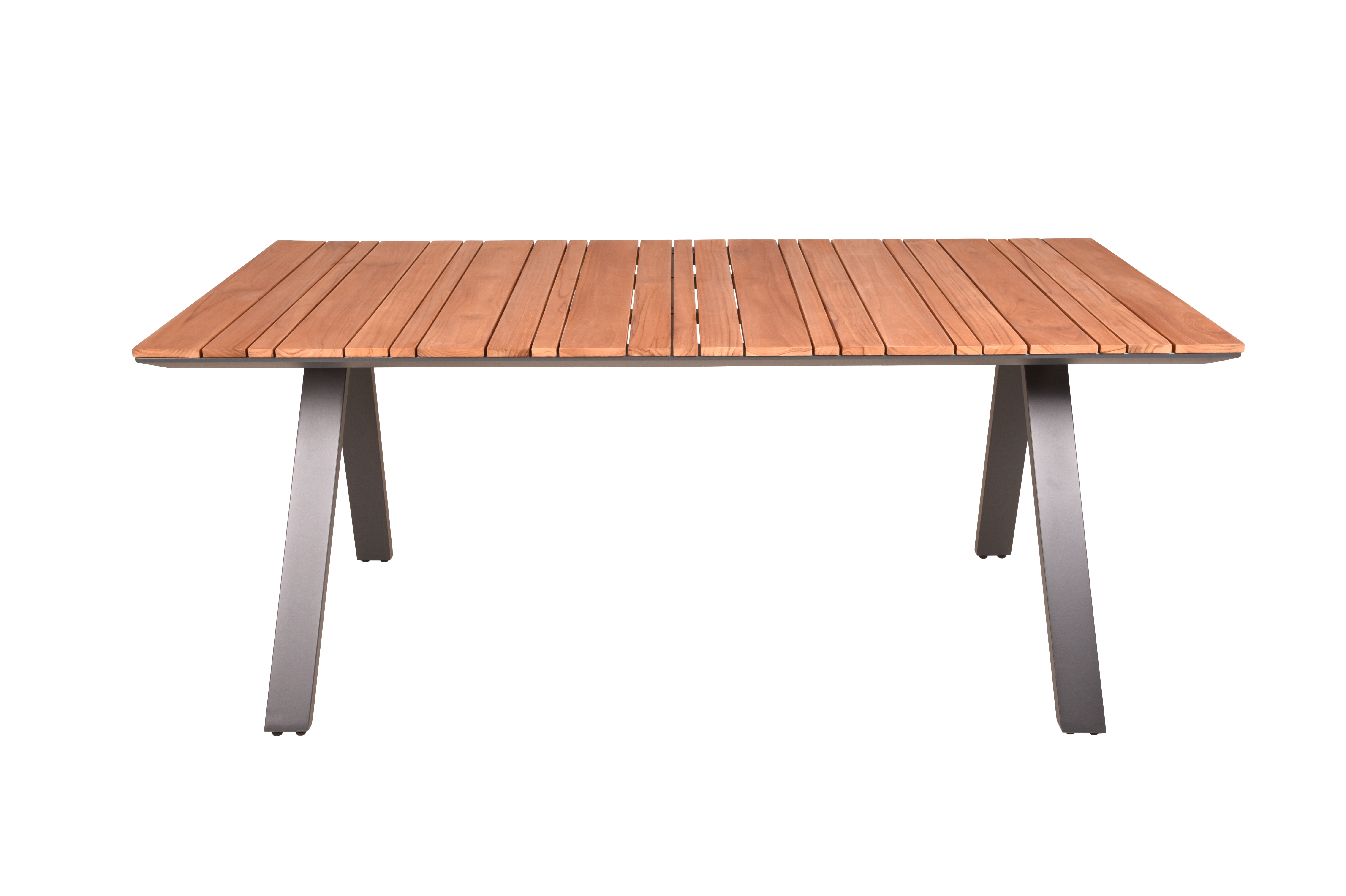Dieser Tisch eignet sich perfekt für Mahlzeiten im Freien, gesellige Zusammenkünfte oder entspannte Momente. Mit seinem zeitgemäßen Design und den hochwertigen Materialien wird der Tisch DAVINA sicherlich zu einem Blickfang in Ihrem Raum und bietet gleichzeitig Komfort und Funktionalität. Das Teakholz verleiht dem Tisch eine natürliche Schönheit, während das pulverbeschichtete Aluminium für Stabilität und Wetterbeständigkeit sorgt..