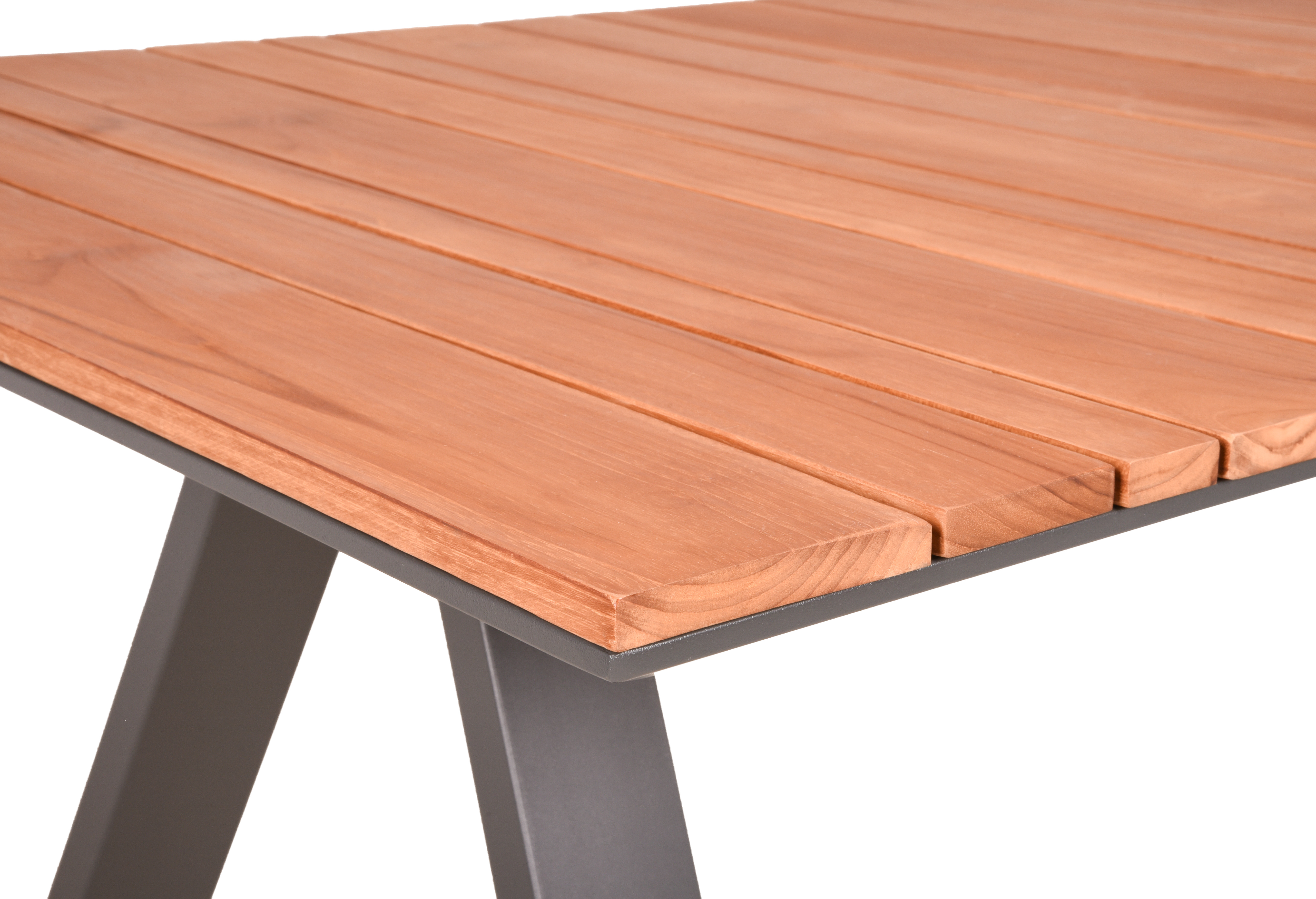 Der Tisch DAVINA verfügt über ein Gestell aus pulverbeschichtetem Anthrazit-Aluminium, das nicht nur robust, sondern auch wetterbeständig ist. Die Tischplatte besteht aus Teakholz FSC 100%, was für eine natürliche und warme Optik sorgt. Teakholz ist auch für seine Langlebigkeit und Witterungsbeständigkeit bekannt, was den Tisch ideal für den Einsatz im Freien macht.
